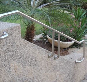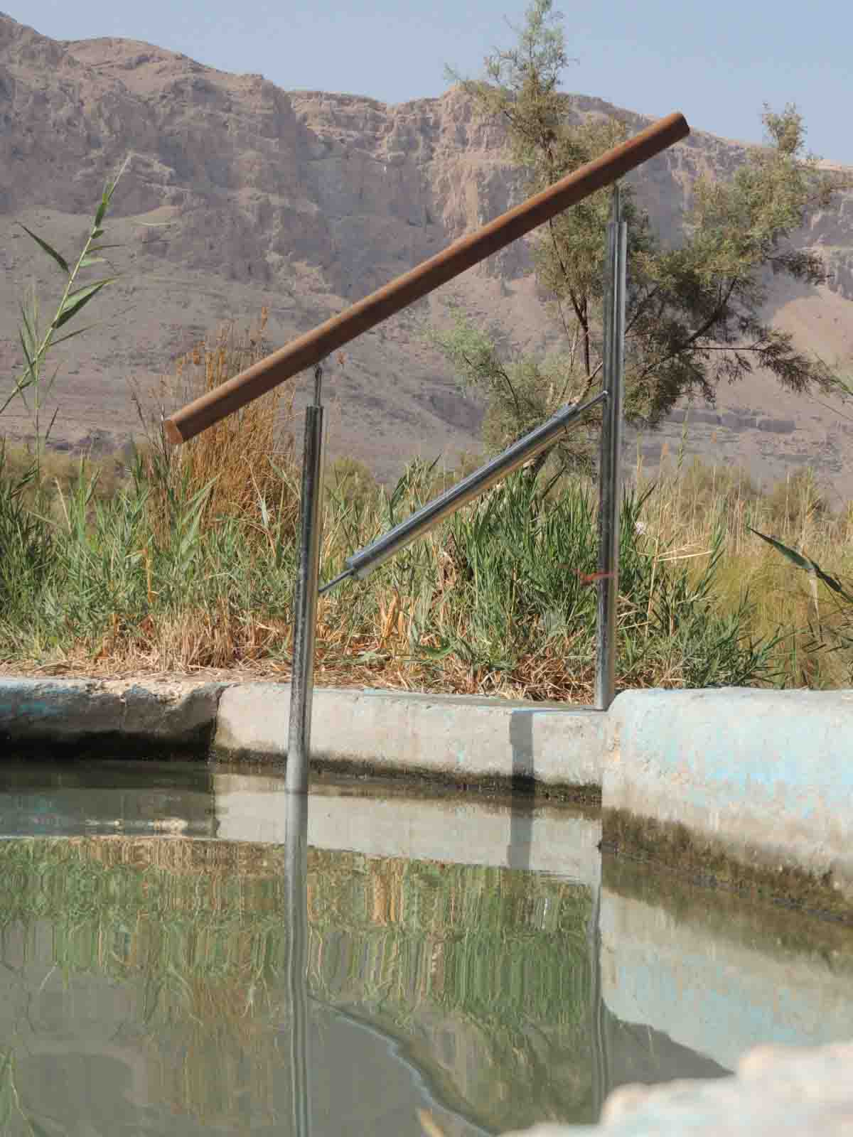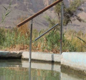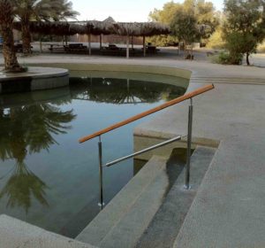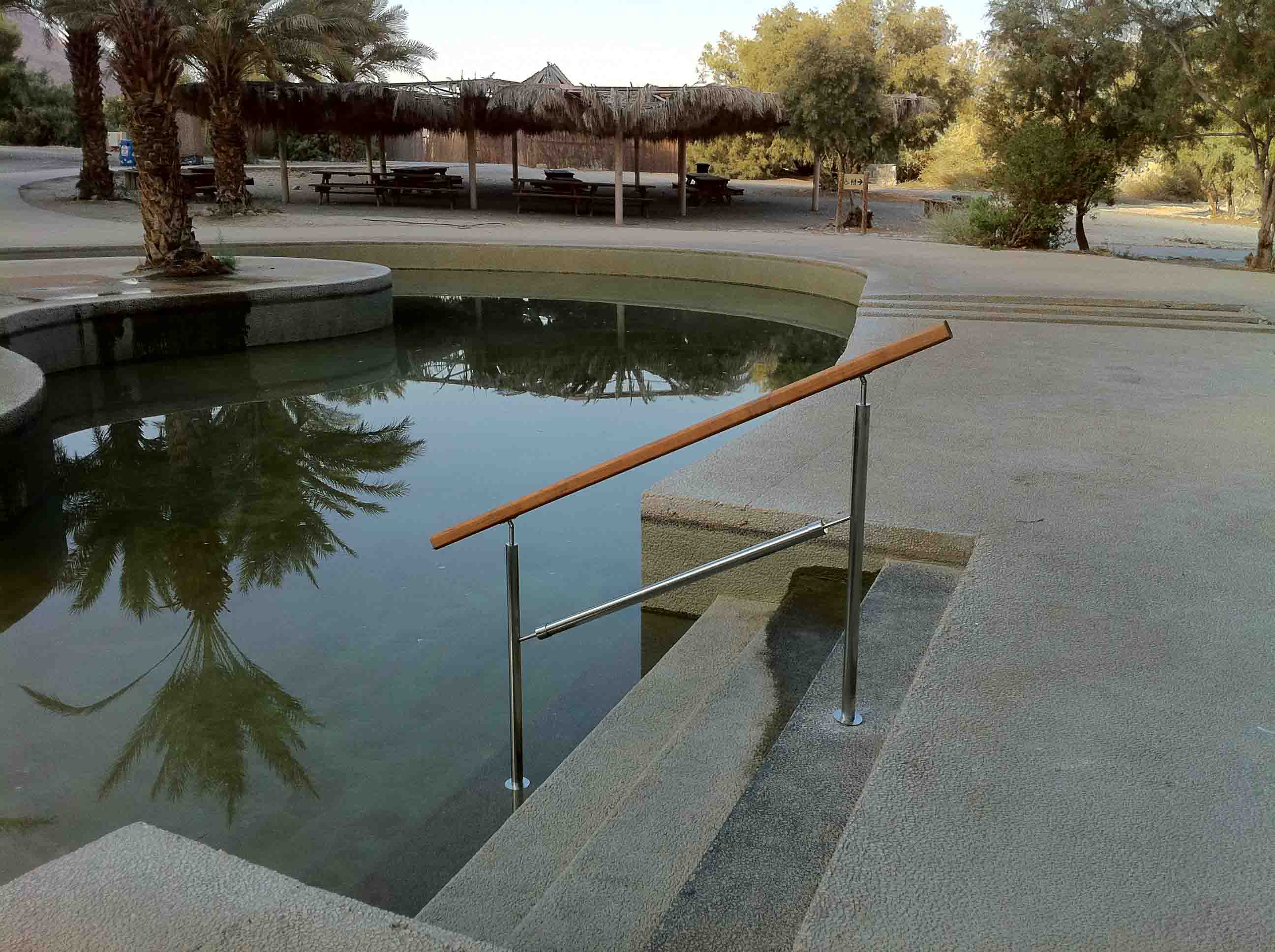 + עיינות צוקים ים המלח : מאחז יד עץ משולב עמודי נירוסטה במקוואות מים