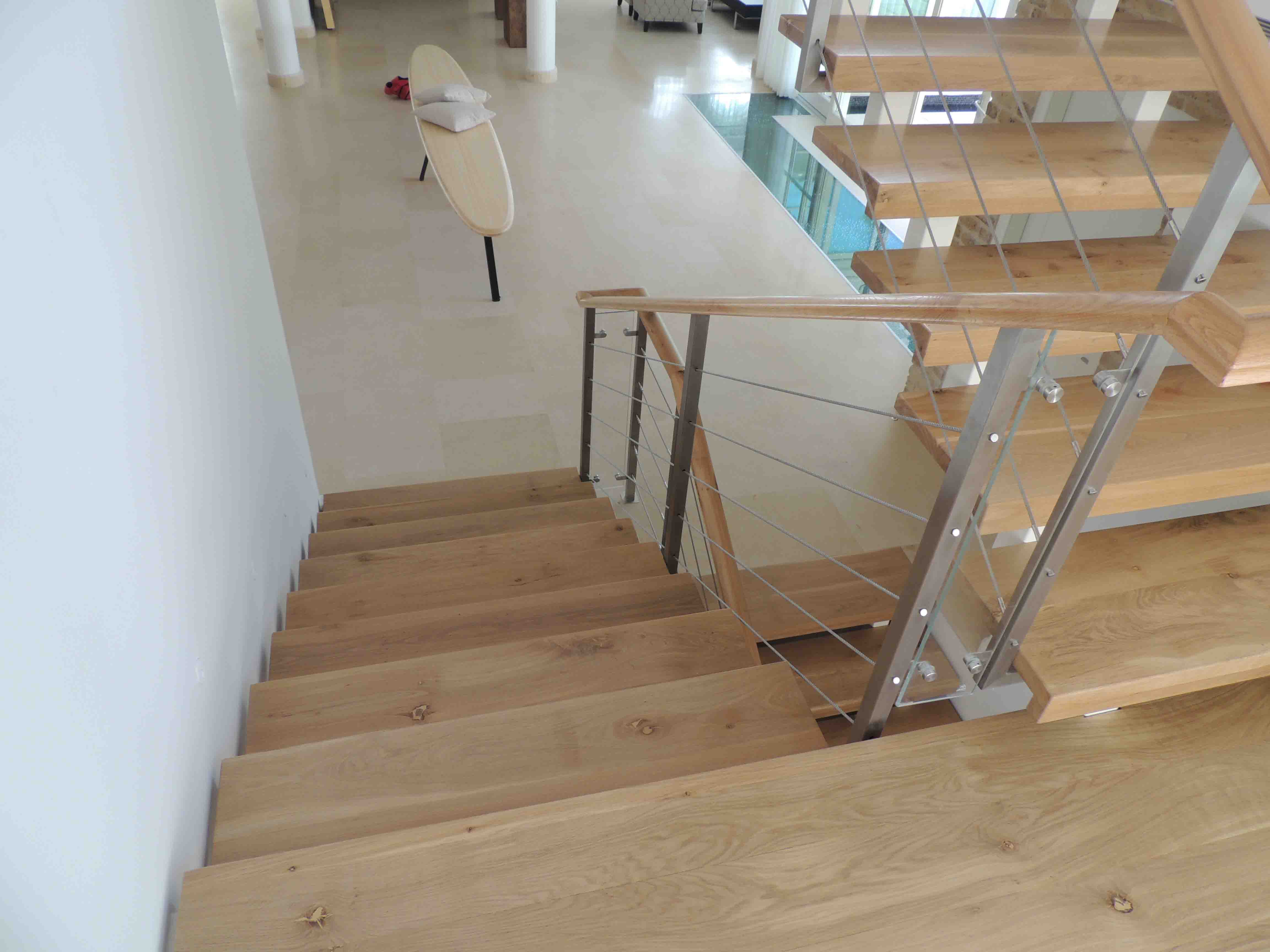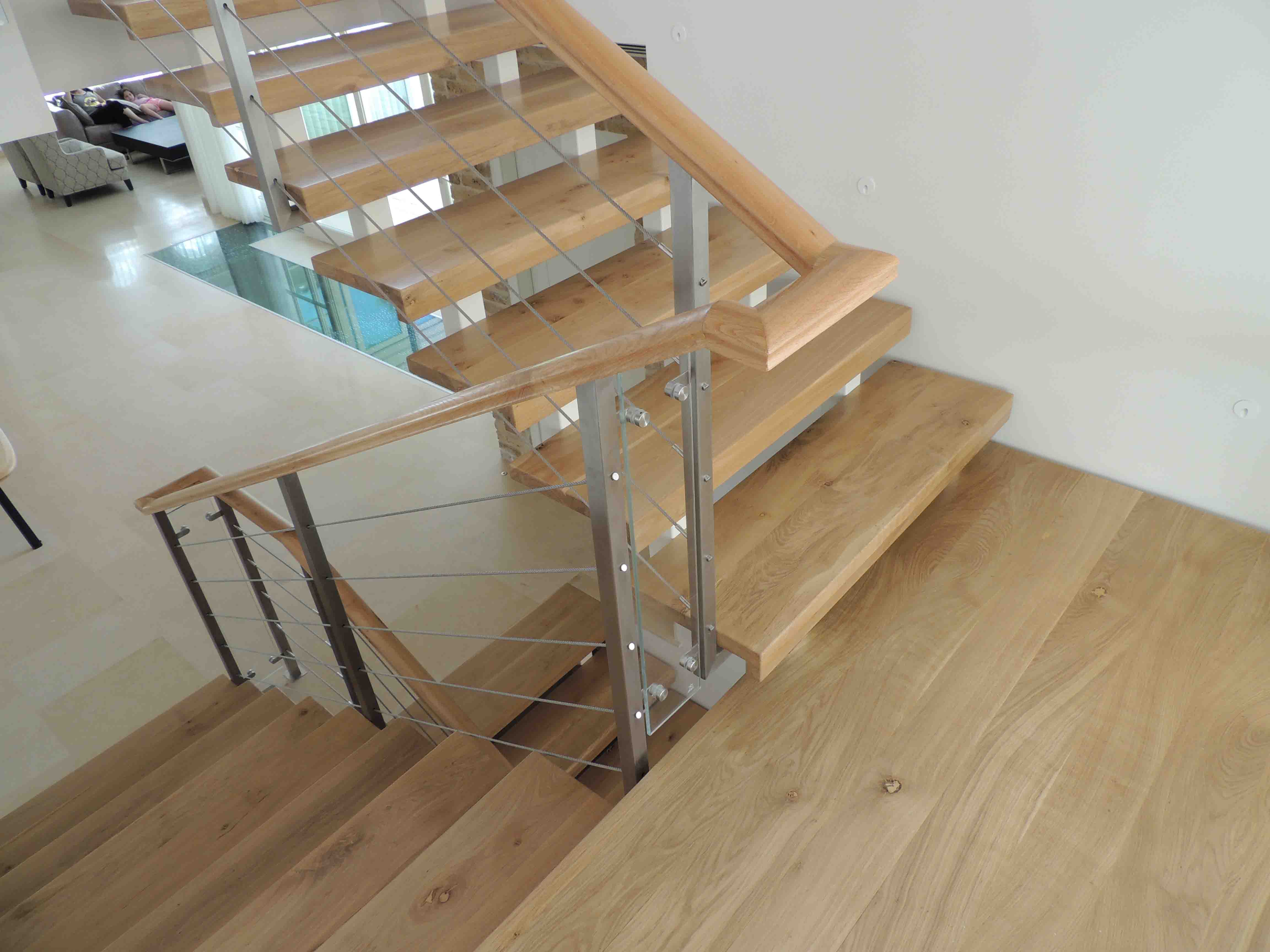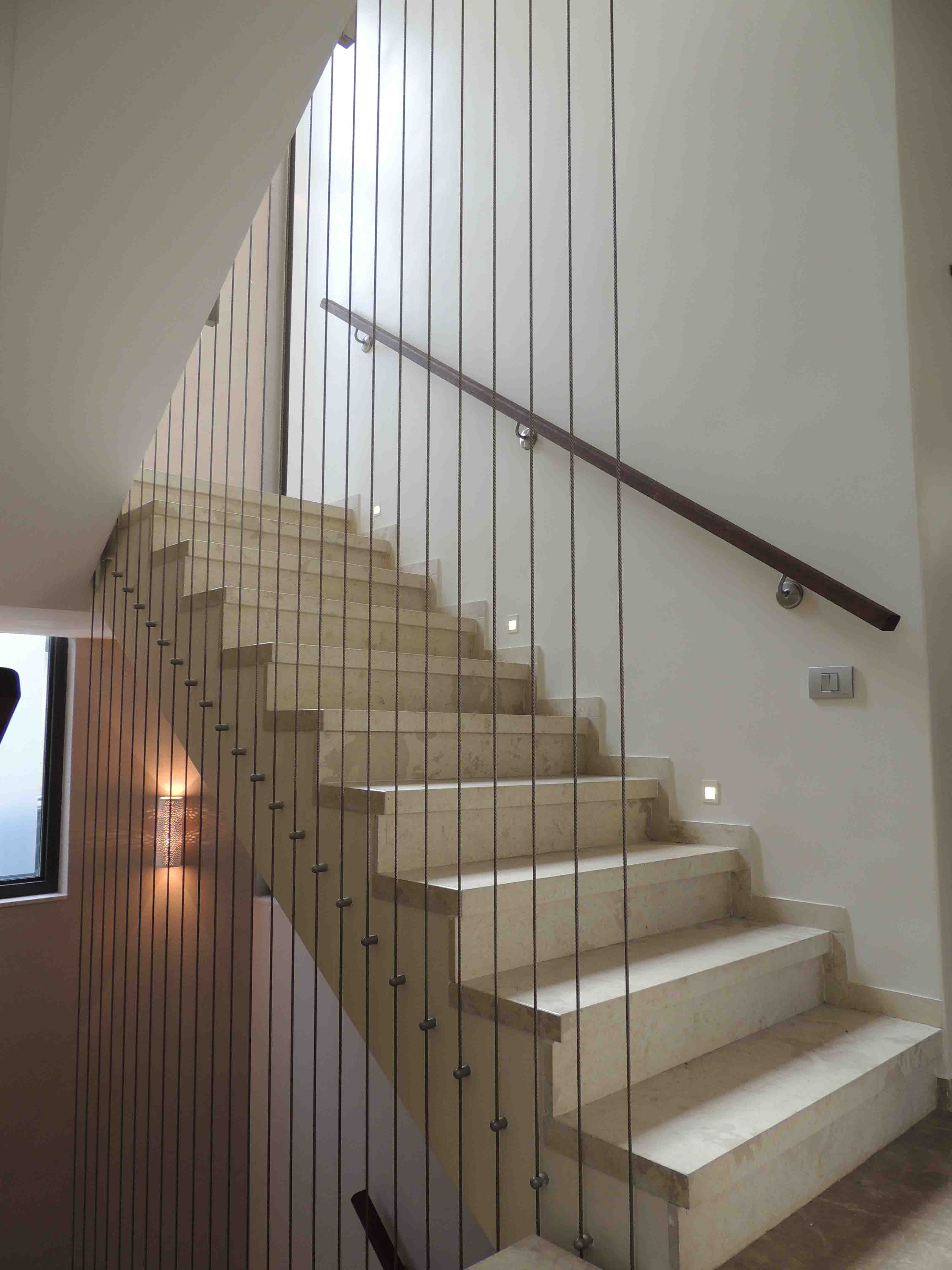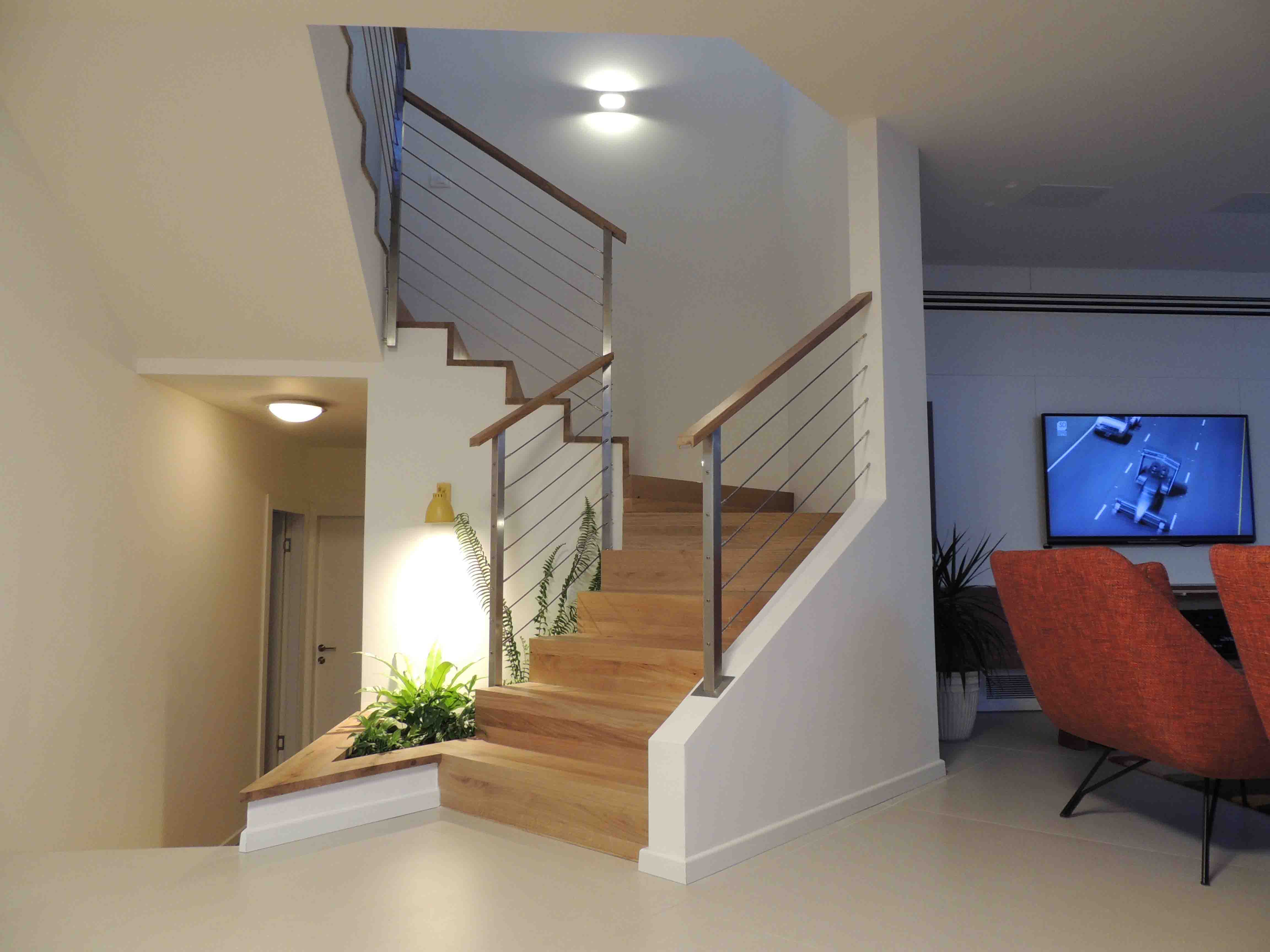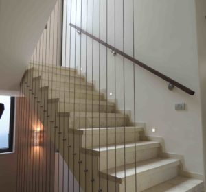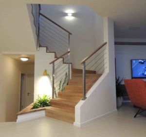 + וילה בגן חיים : מעקה כבלים עם מאחז יד עץ תואם למדרגות