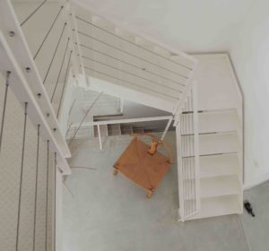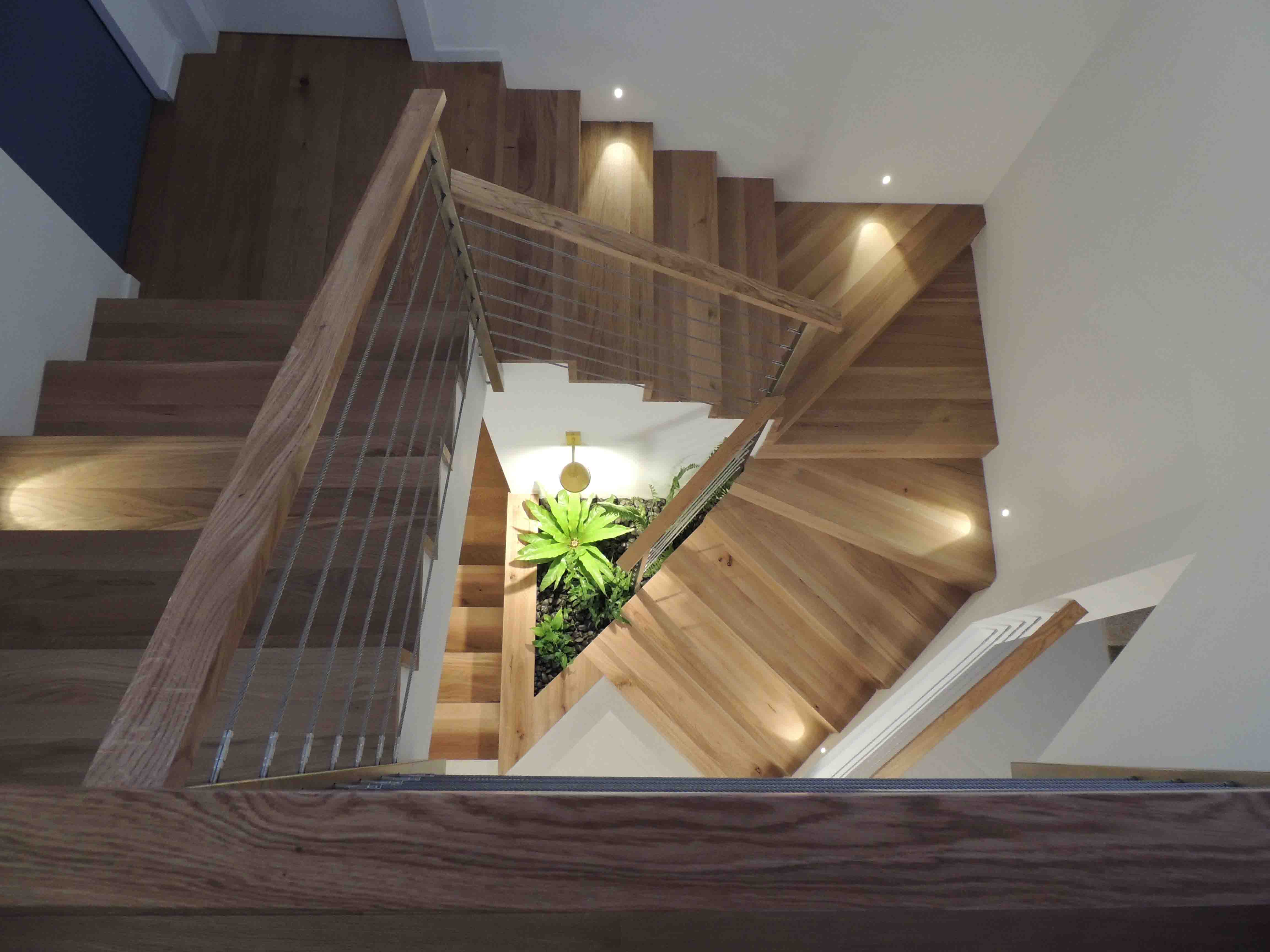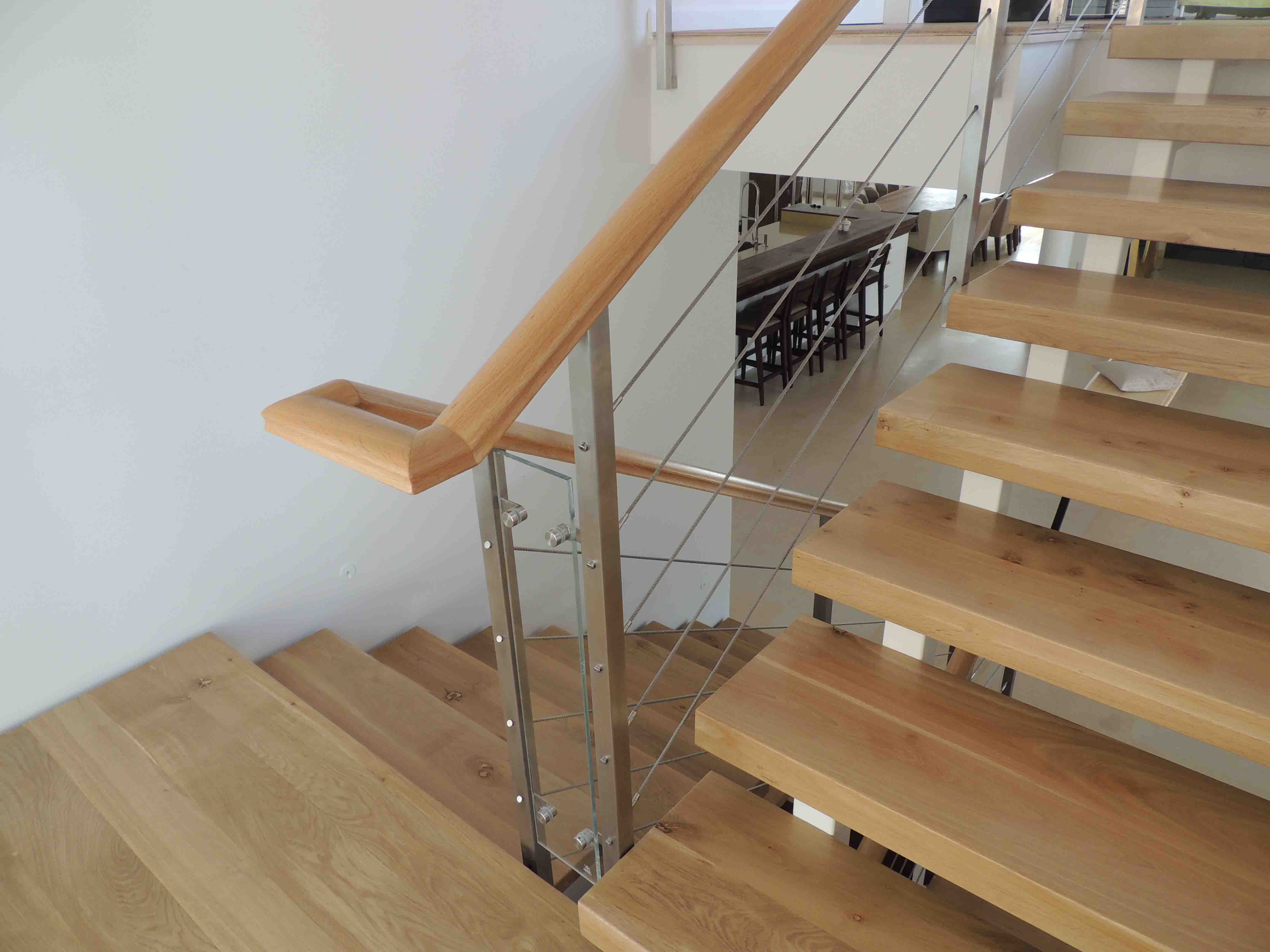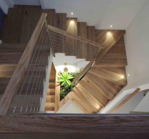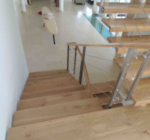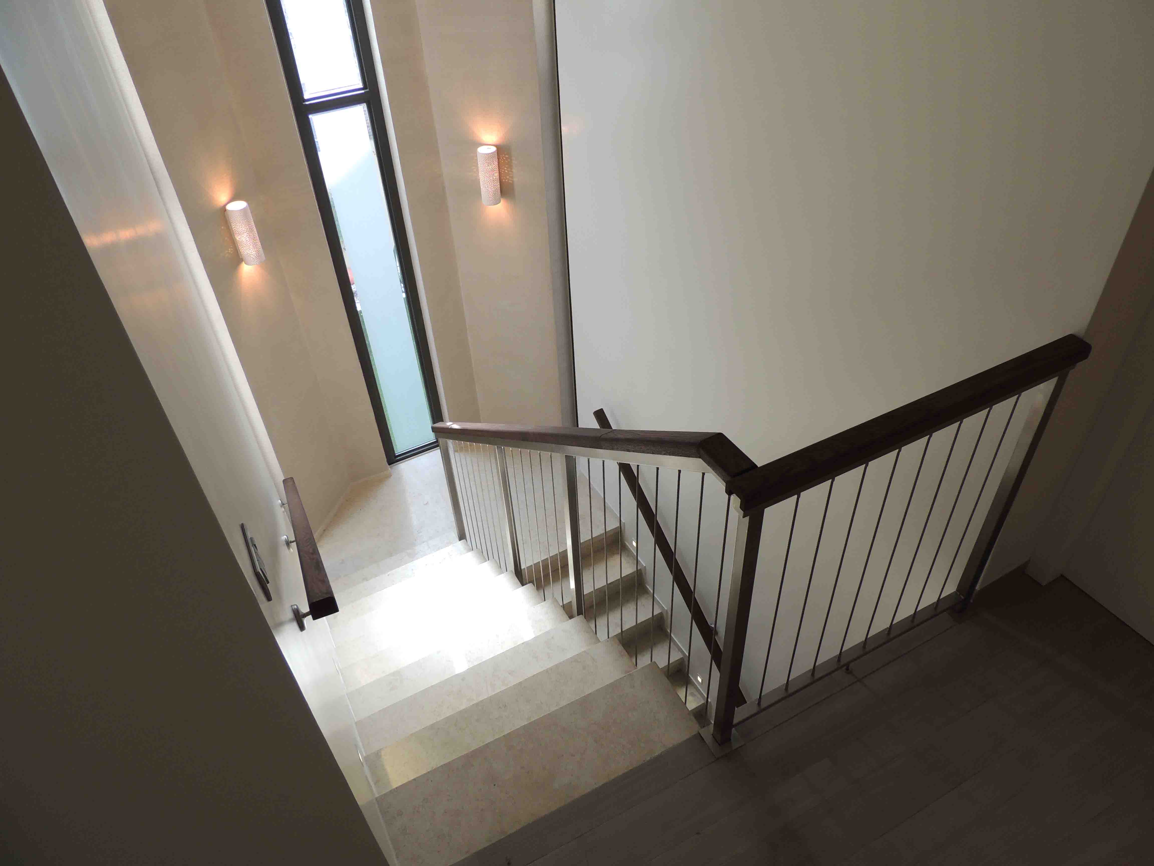 + וילה בגן חיים : מעקה כבלים עם מאחז יד עץ תואם למדרגות