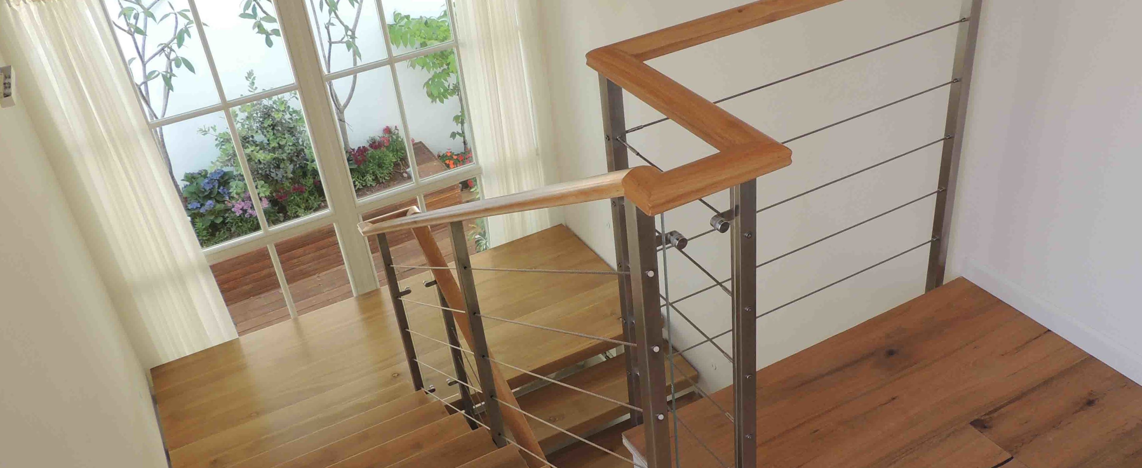 + מעקה כבלים אנכי עם מאחז יד עץ