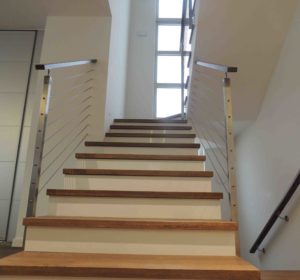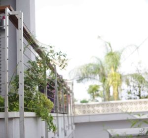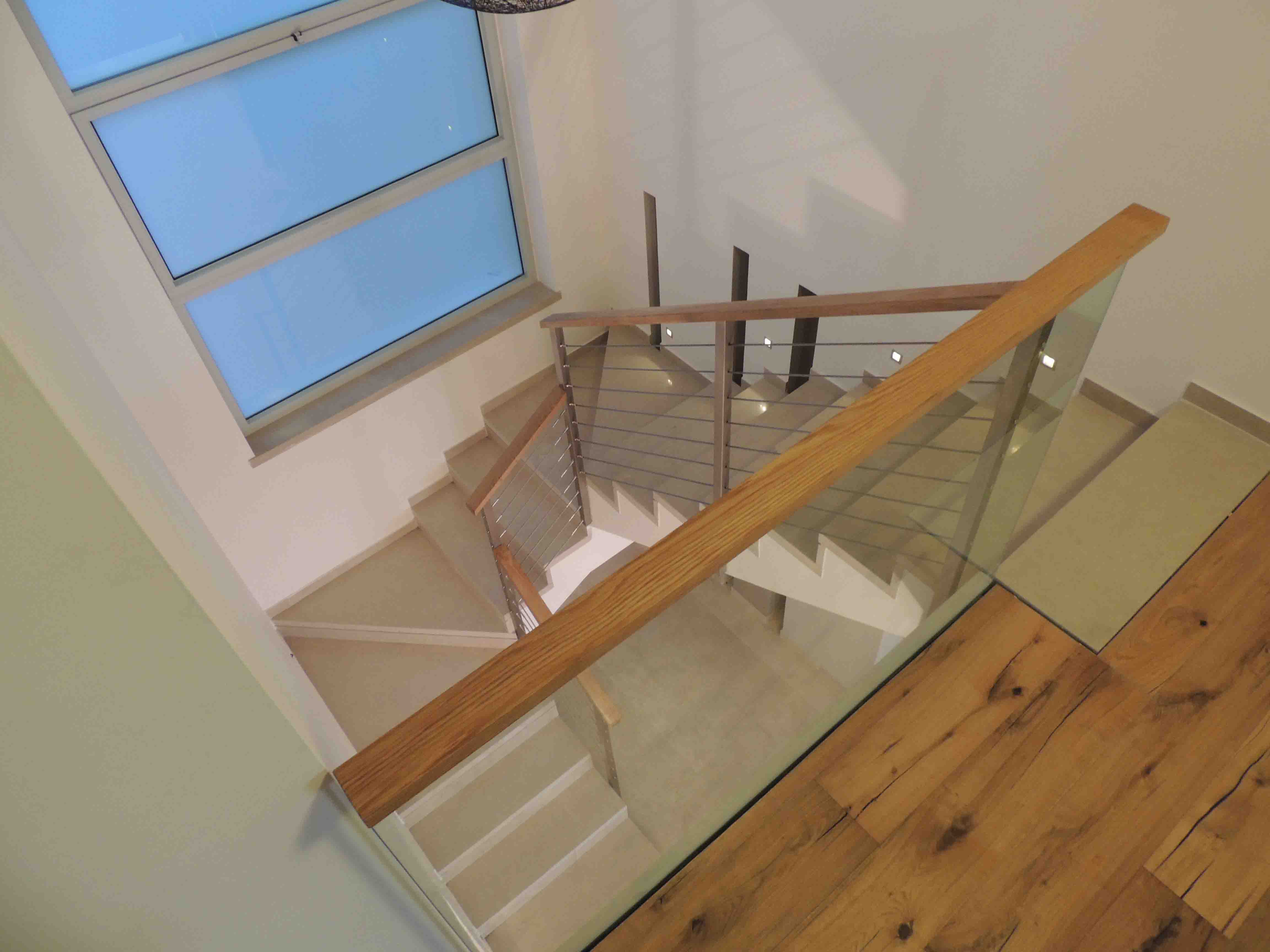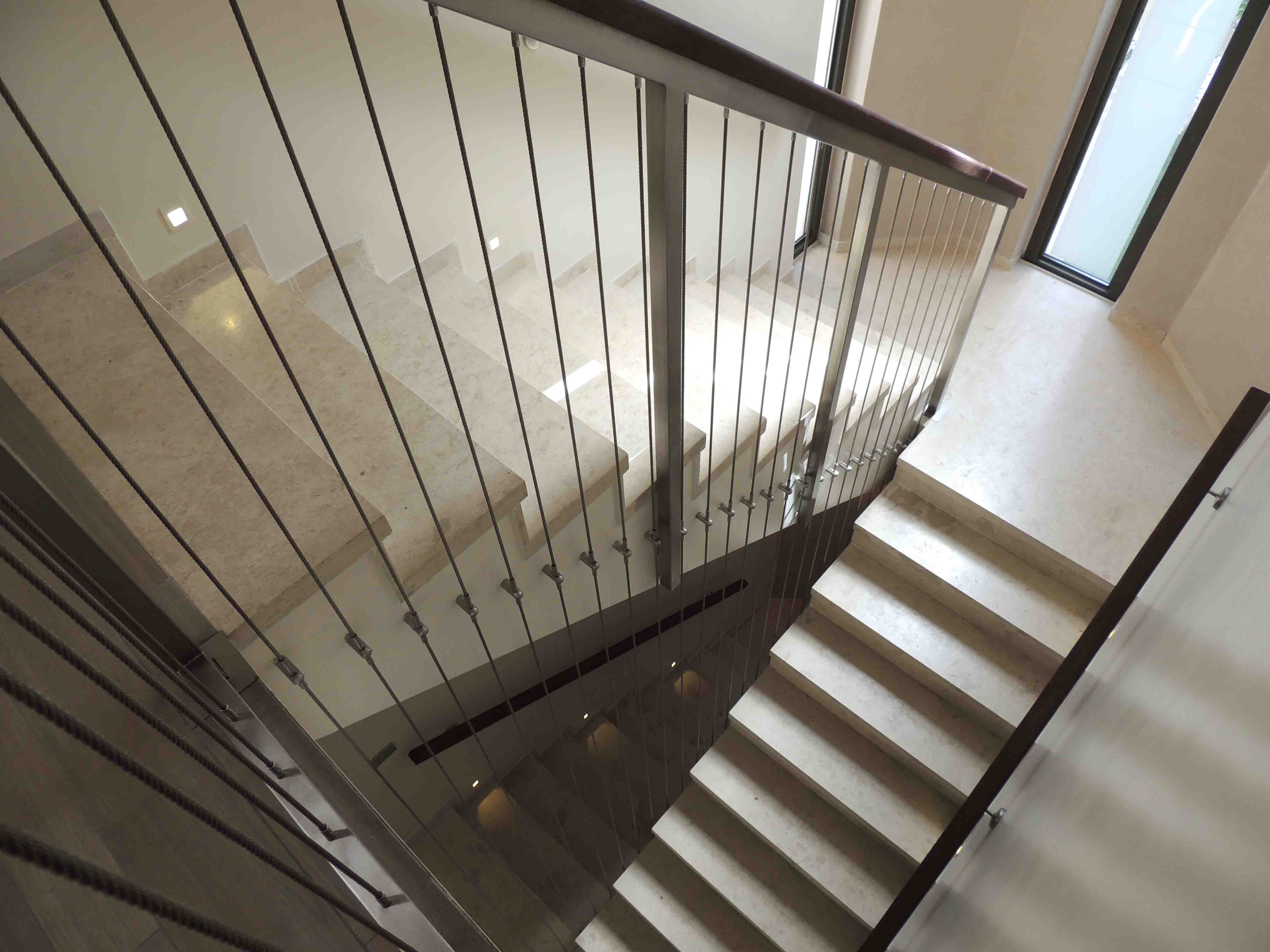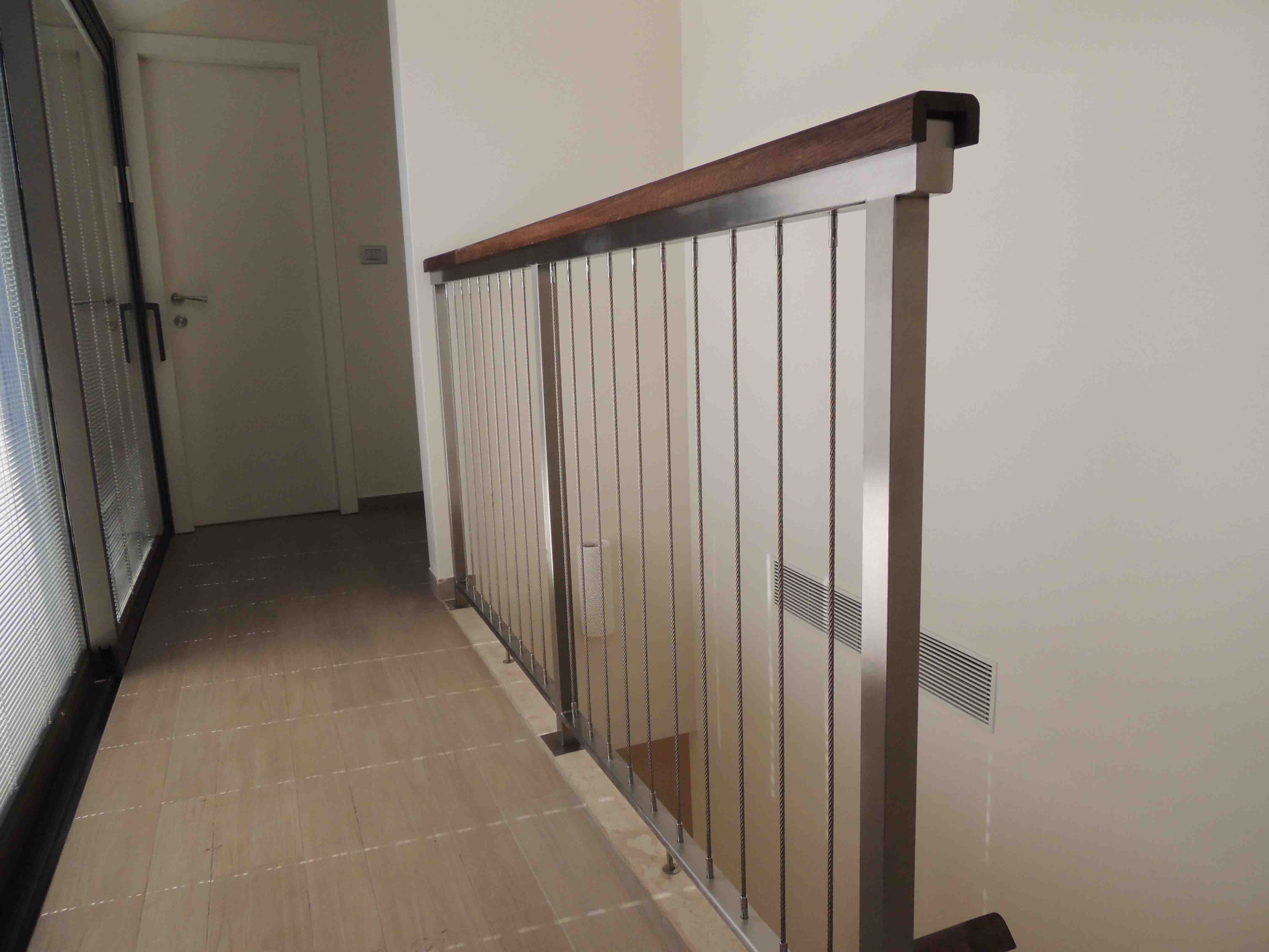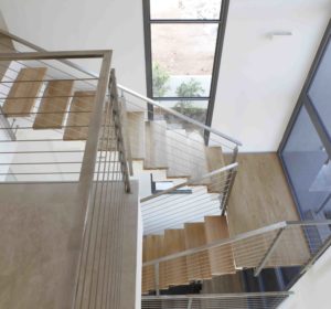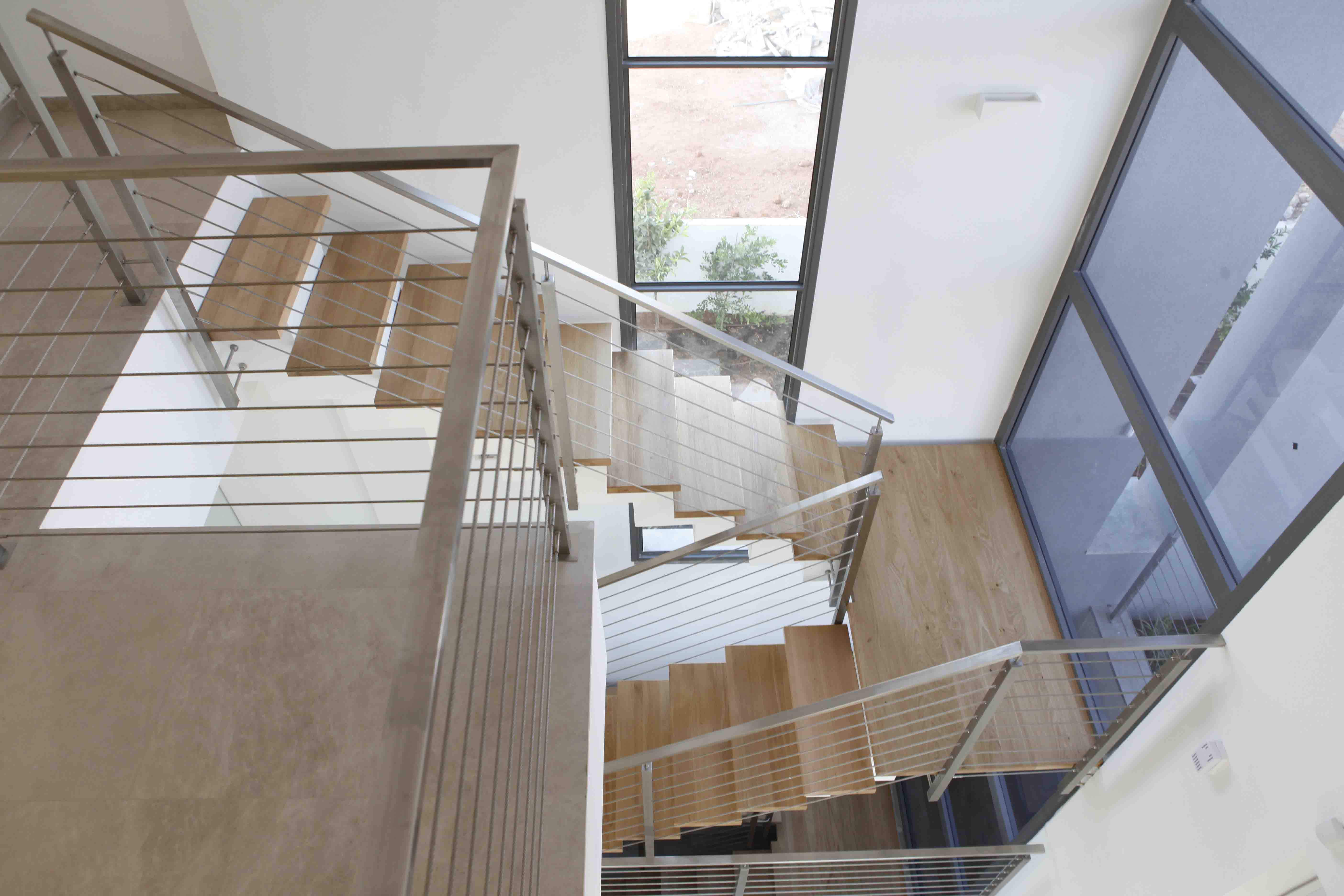 + וילה בגבעתיים : מעקה כבלים עם ציפוי אלקטרופוליש ומאחז יד עץ
