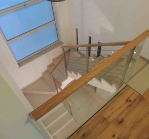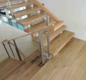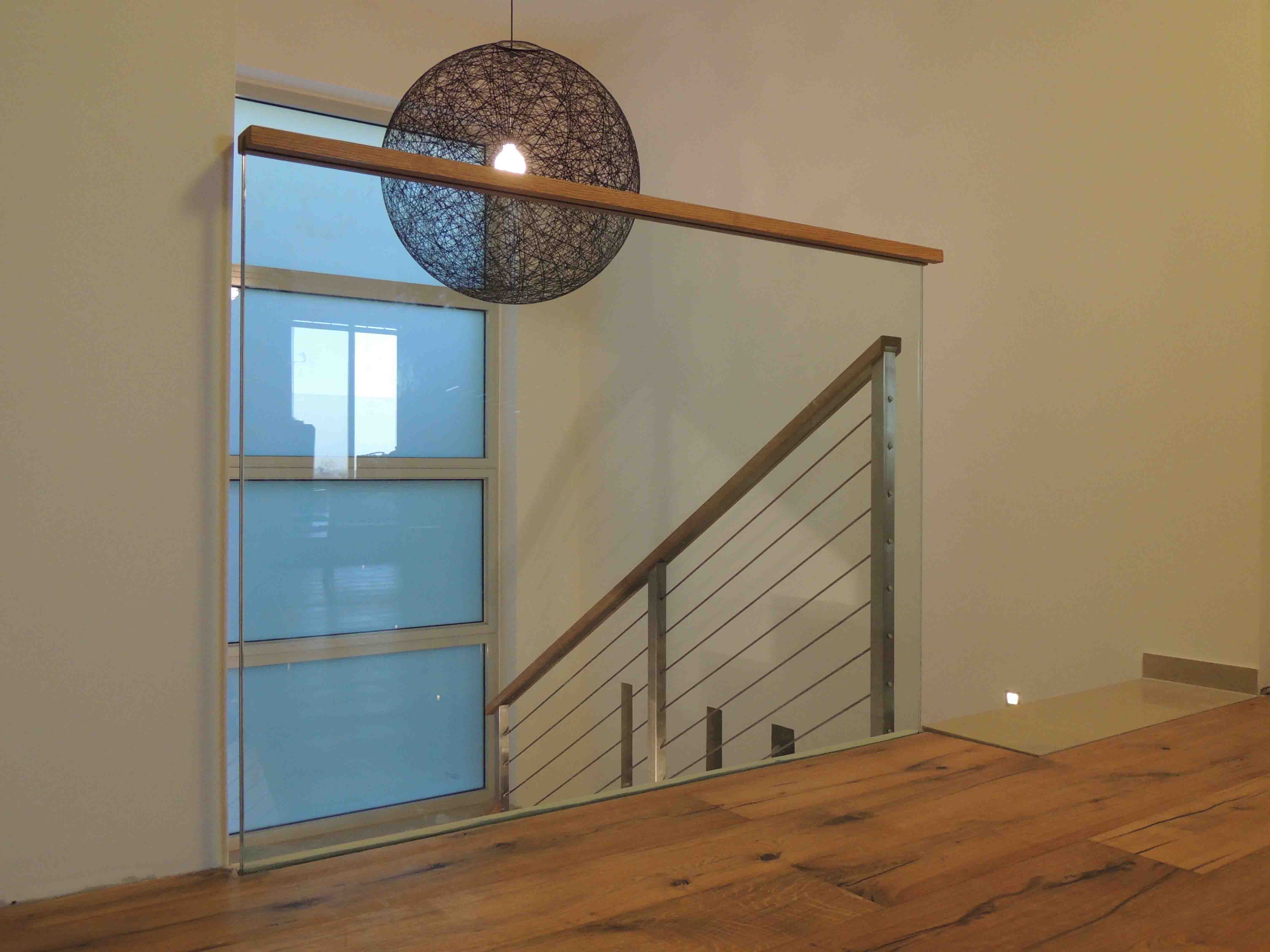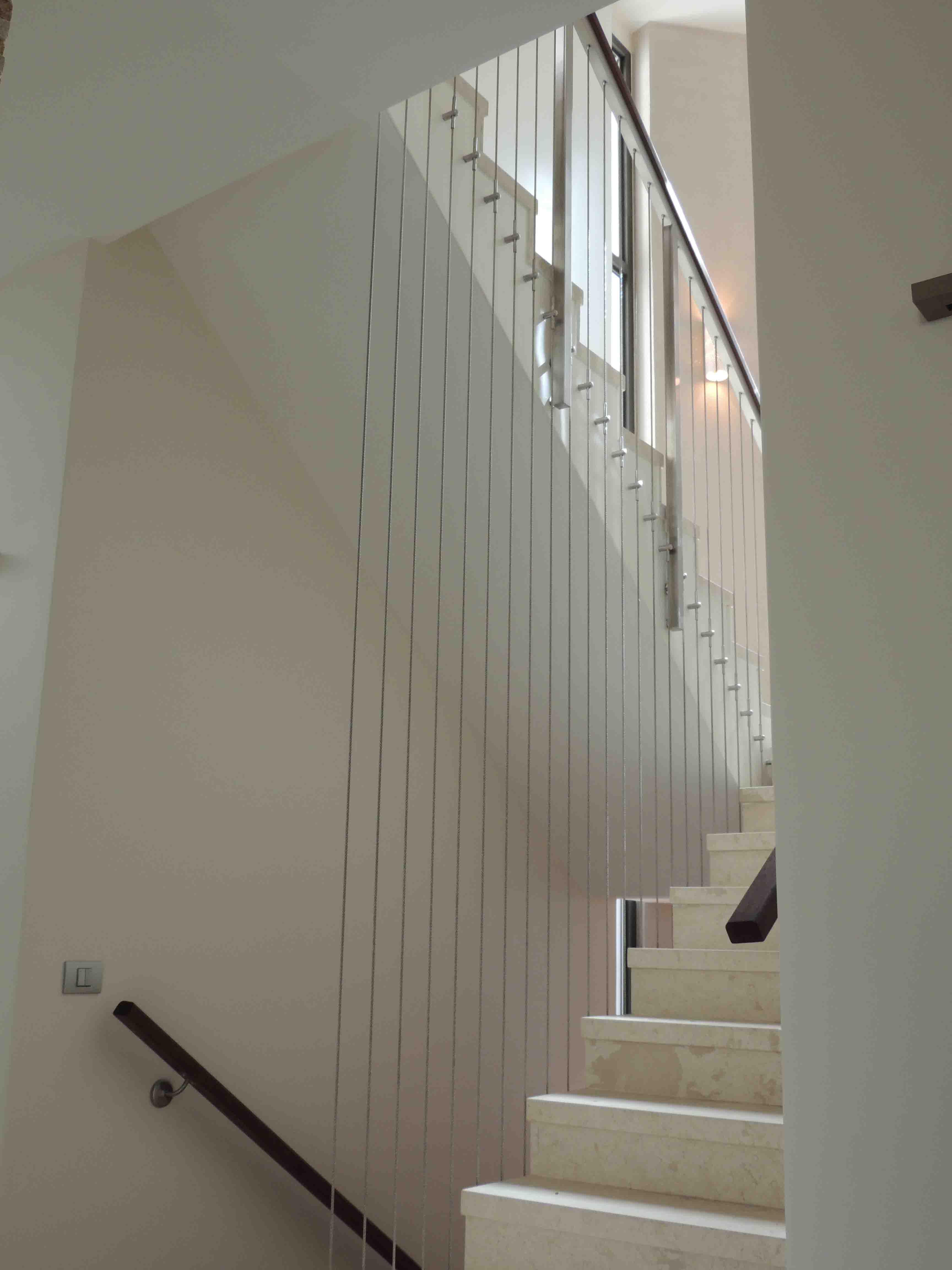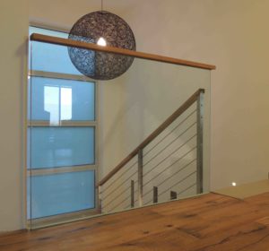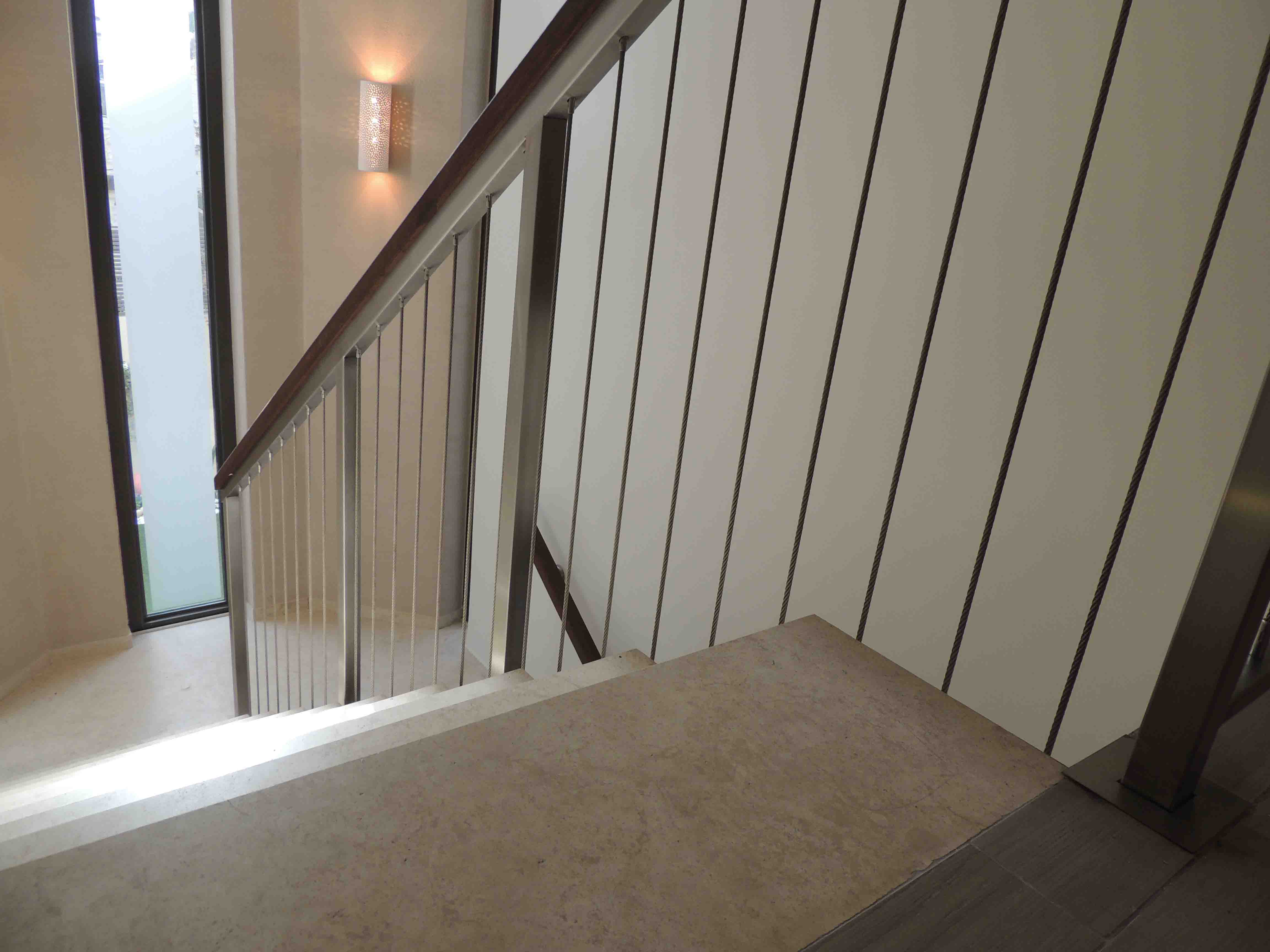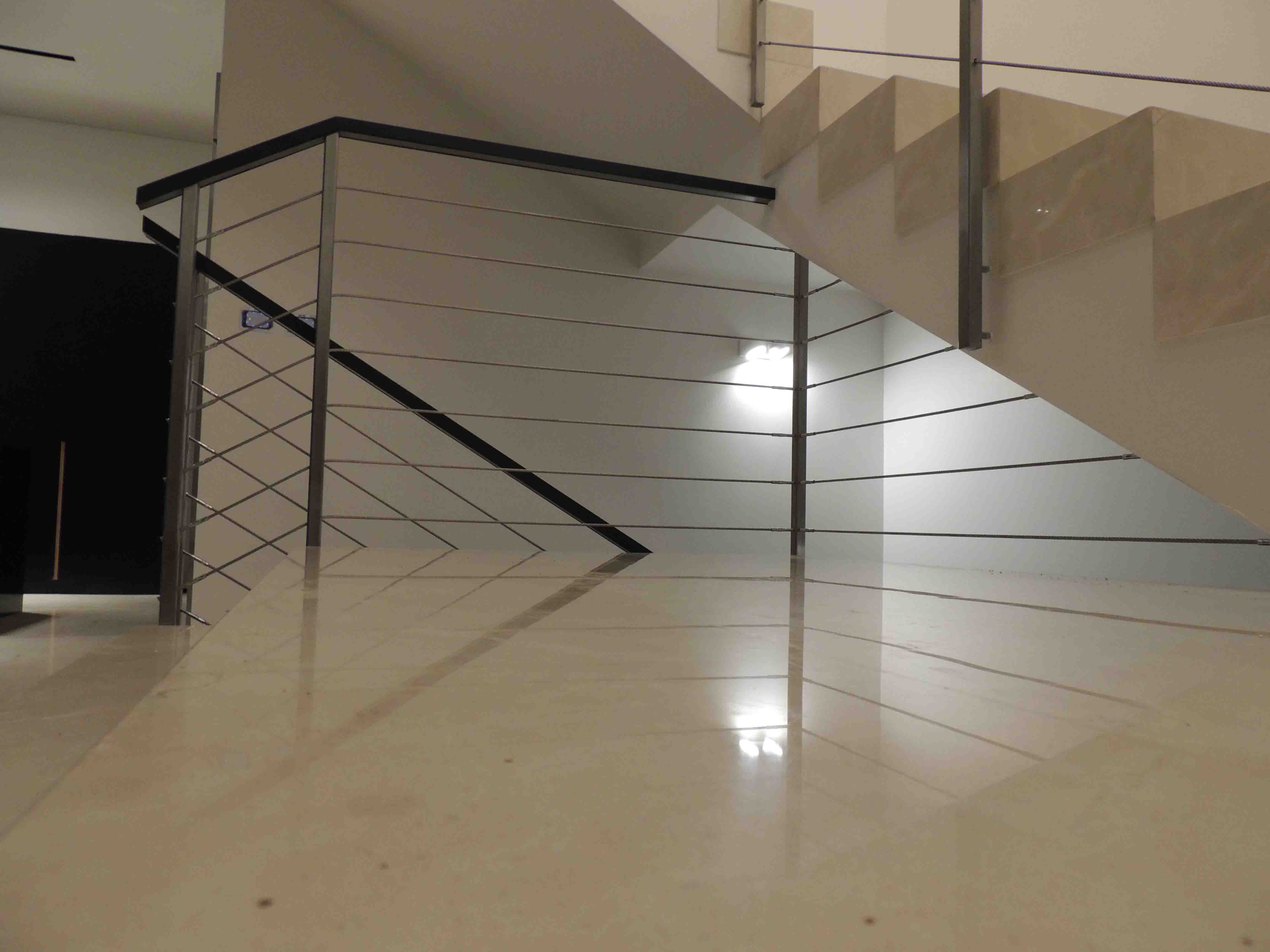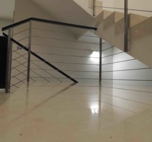 + וילה בגבעתיים : מעקה כבלים עם ציפוי אלקטרופוליש ומאחז יד עץ