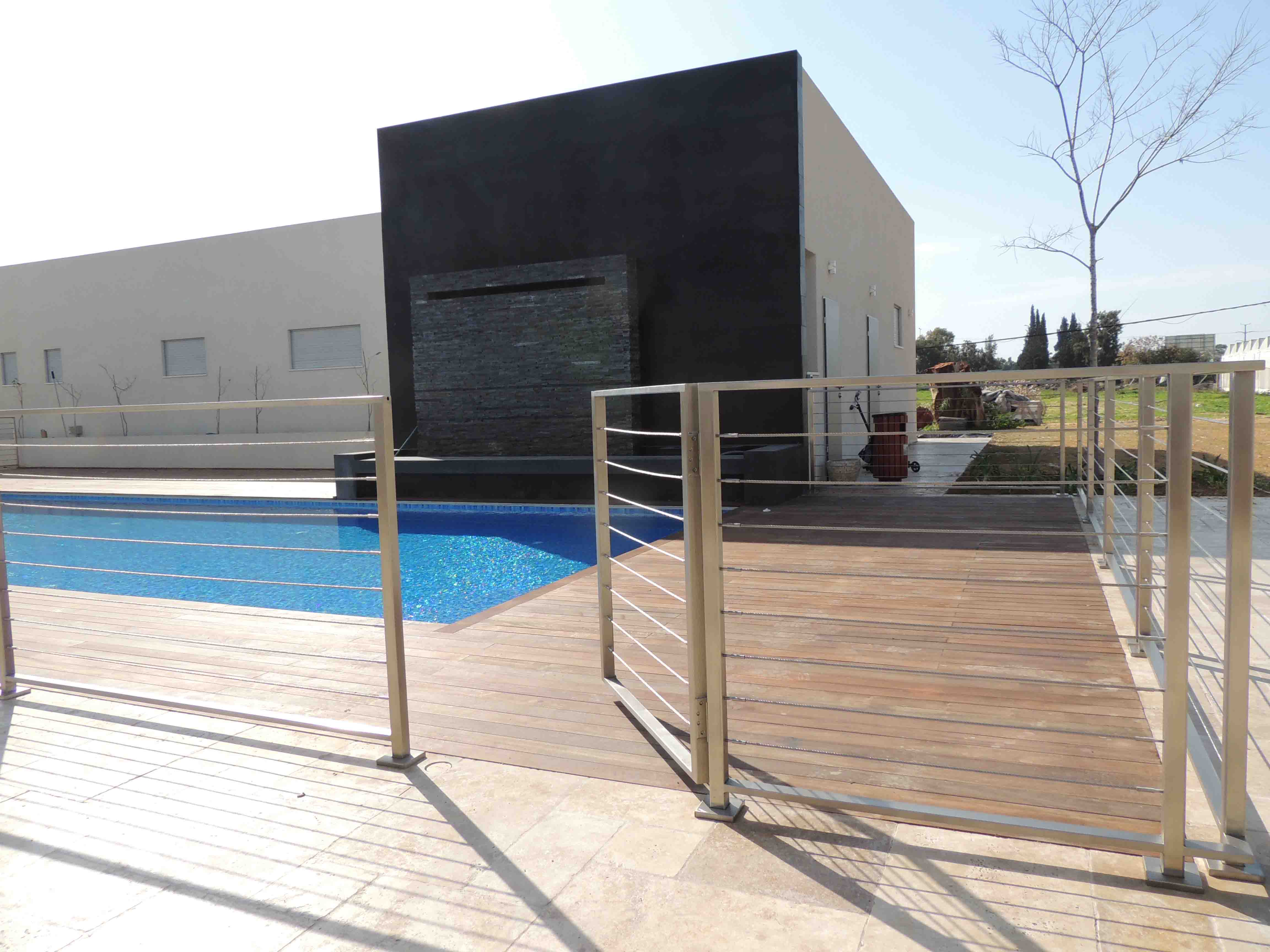 + וילה במשמר השבעה : מעקה כבלים עם מסגרות נירוסטה פריקות