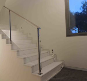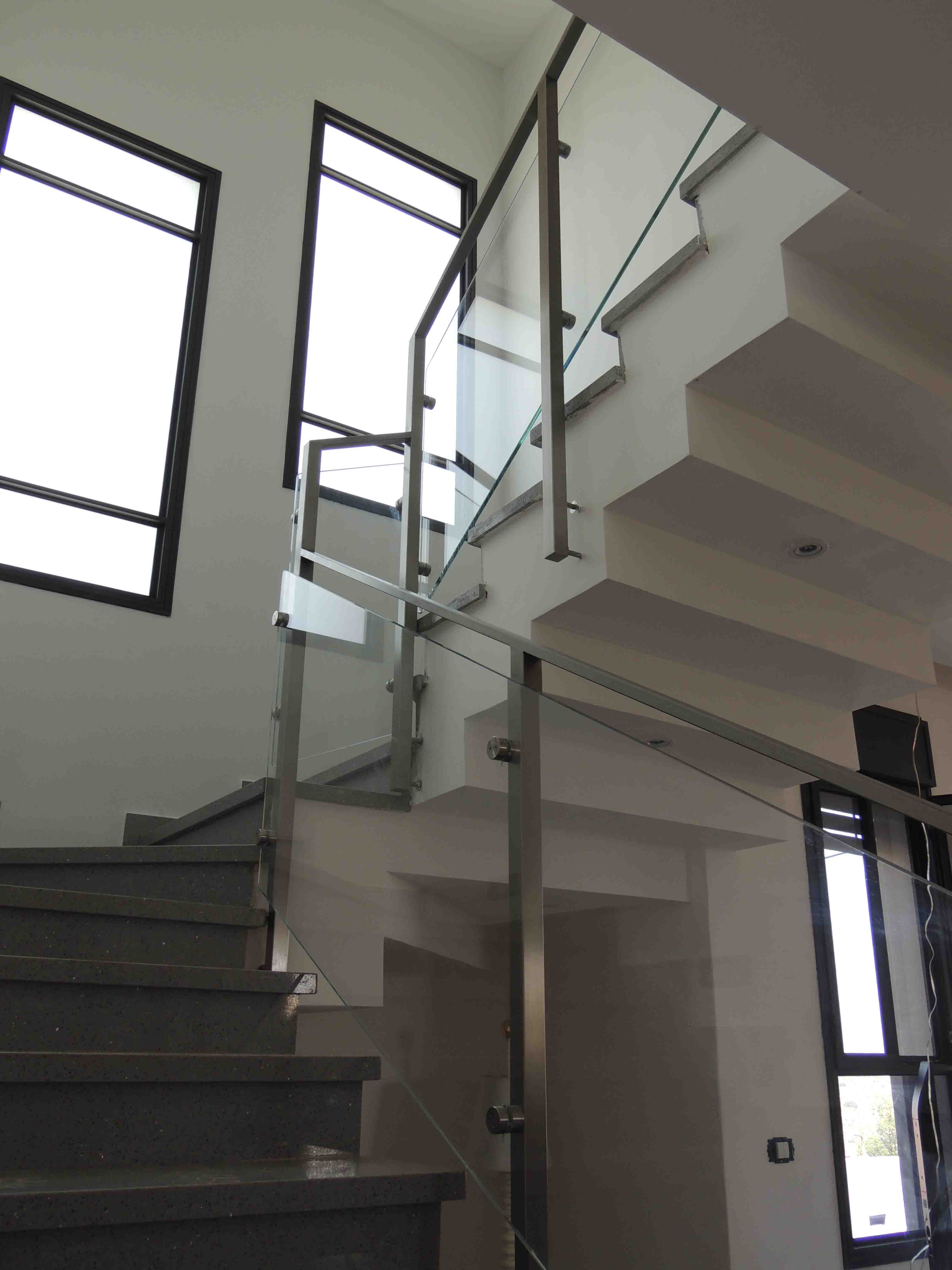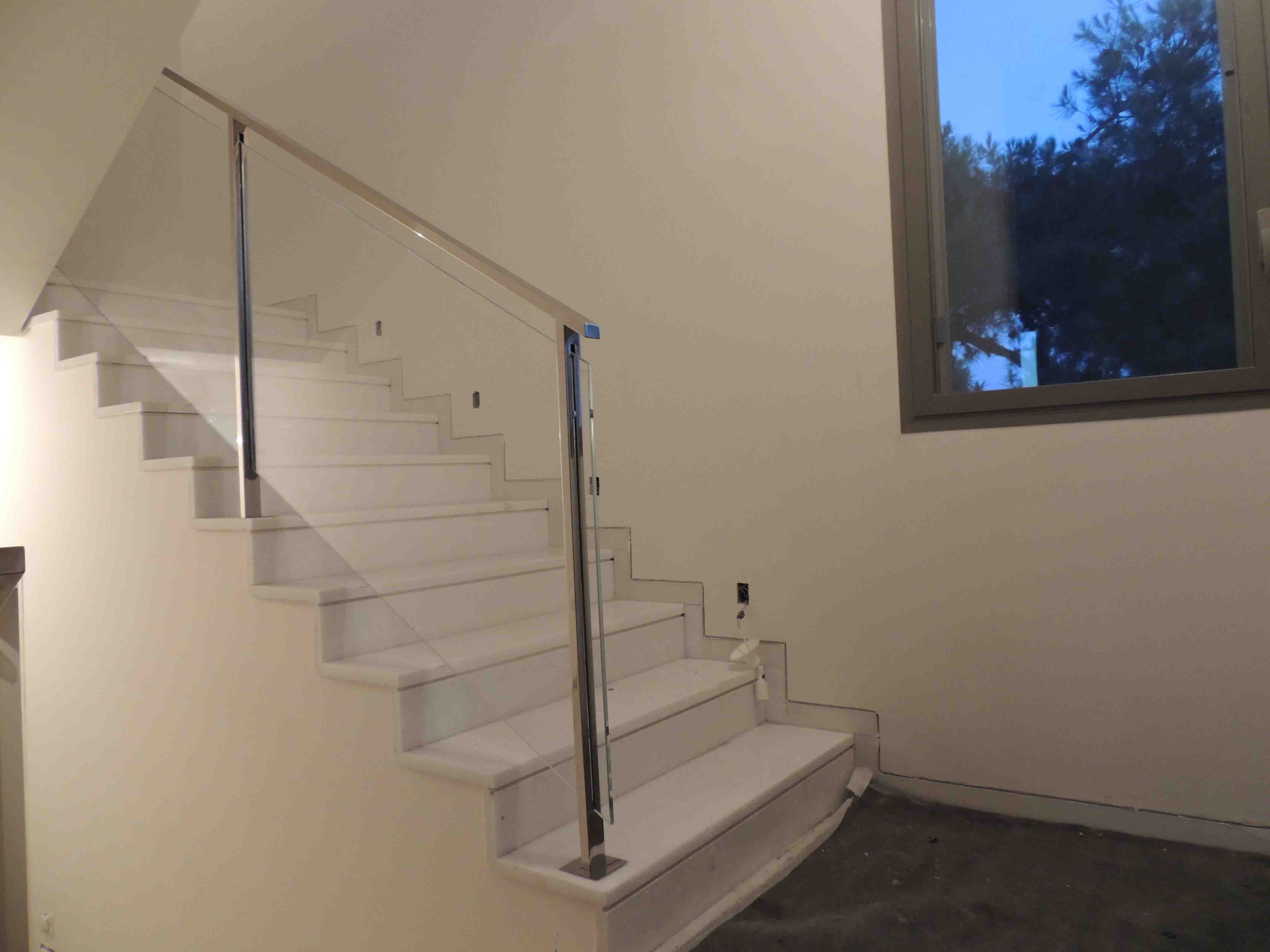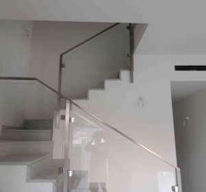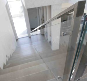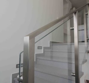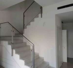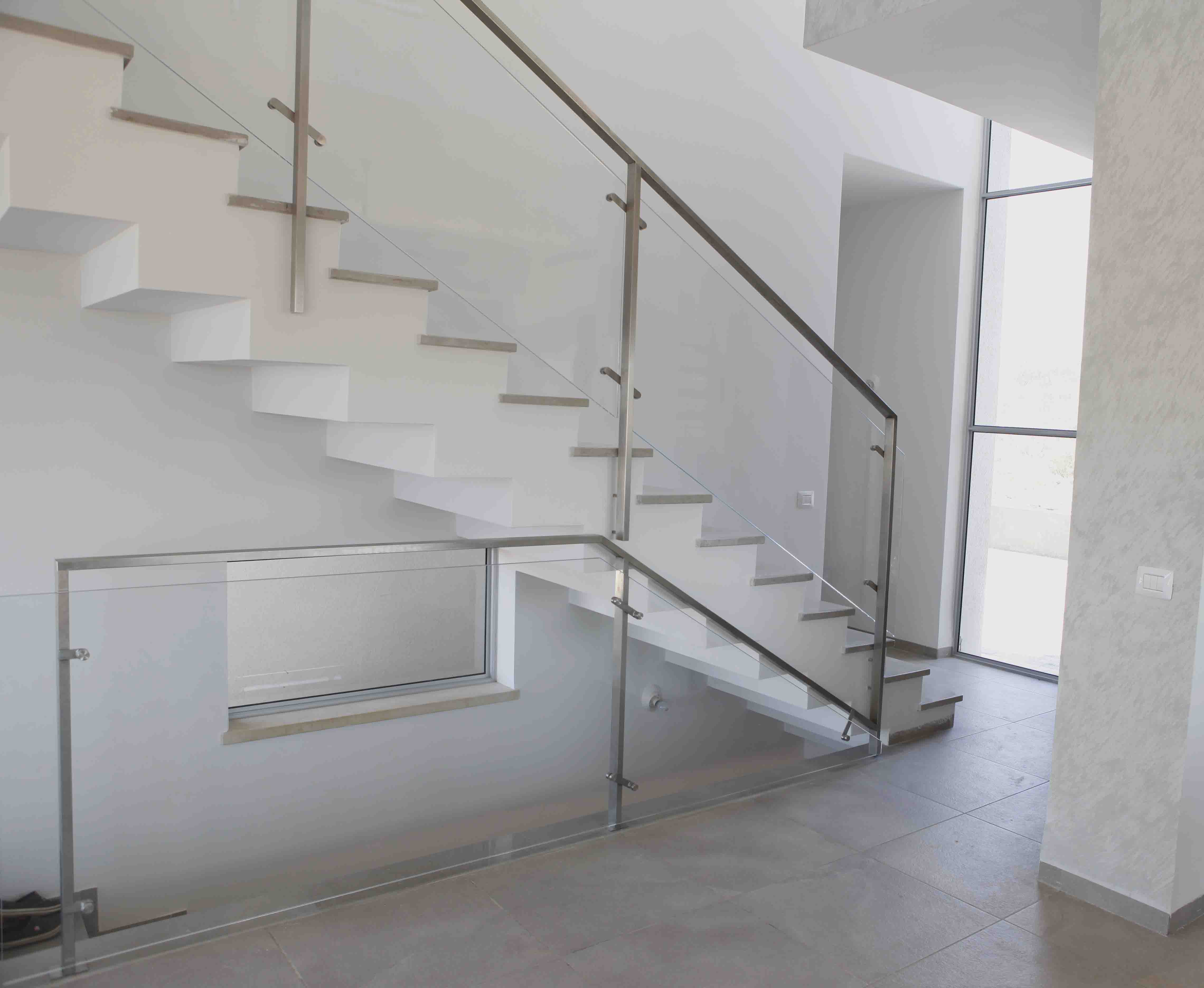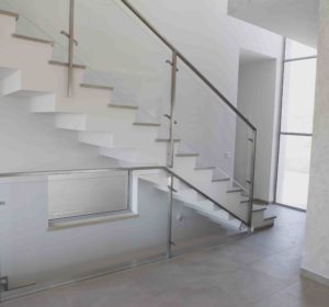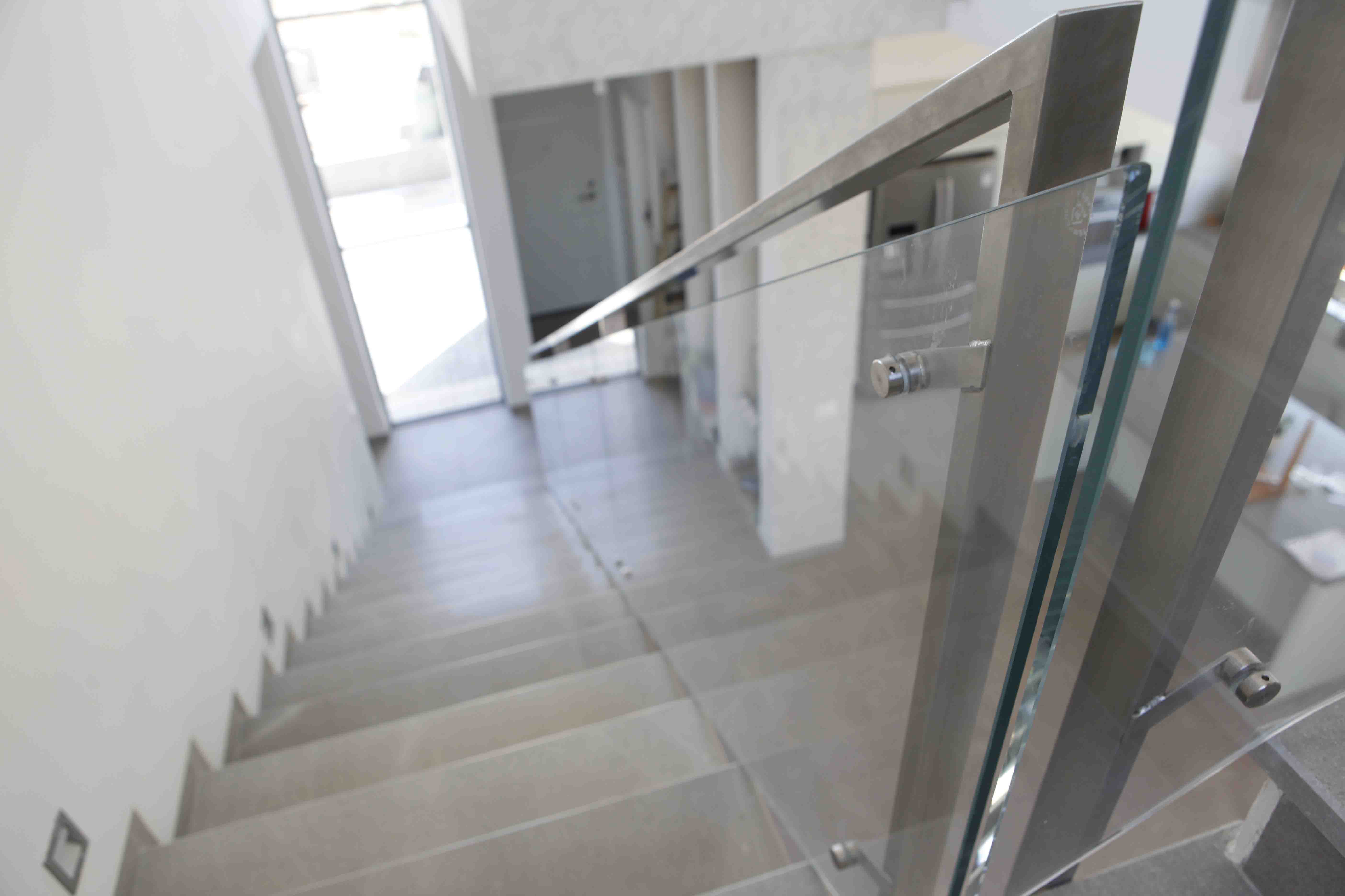 + וילה באר שבע : מעקה נירוסטה משולב זכוכית ע"ג גרם מדרגות ברזל