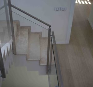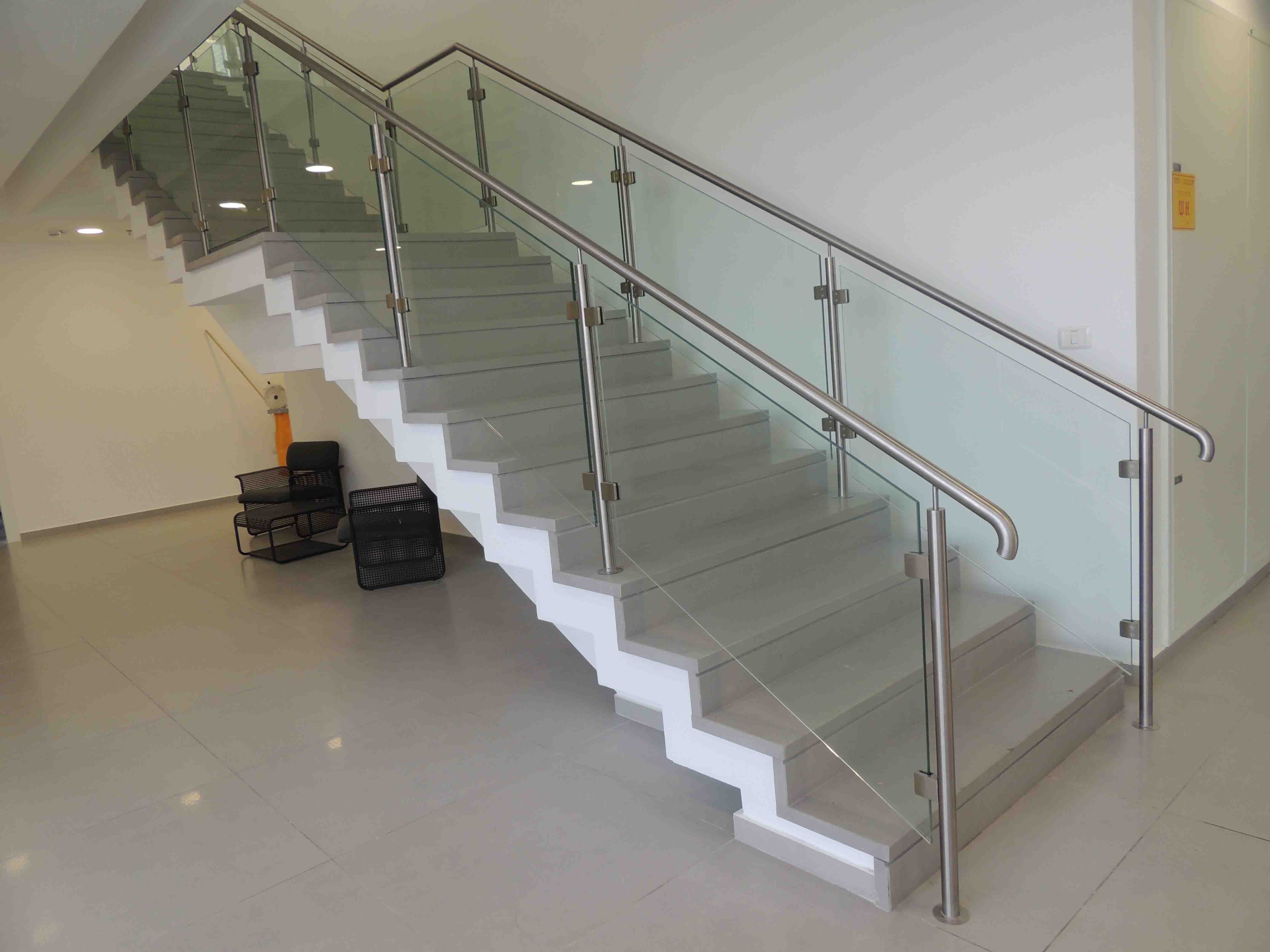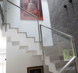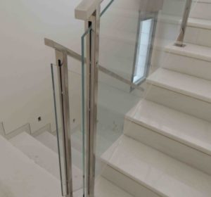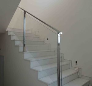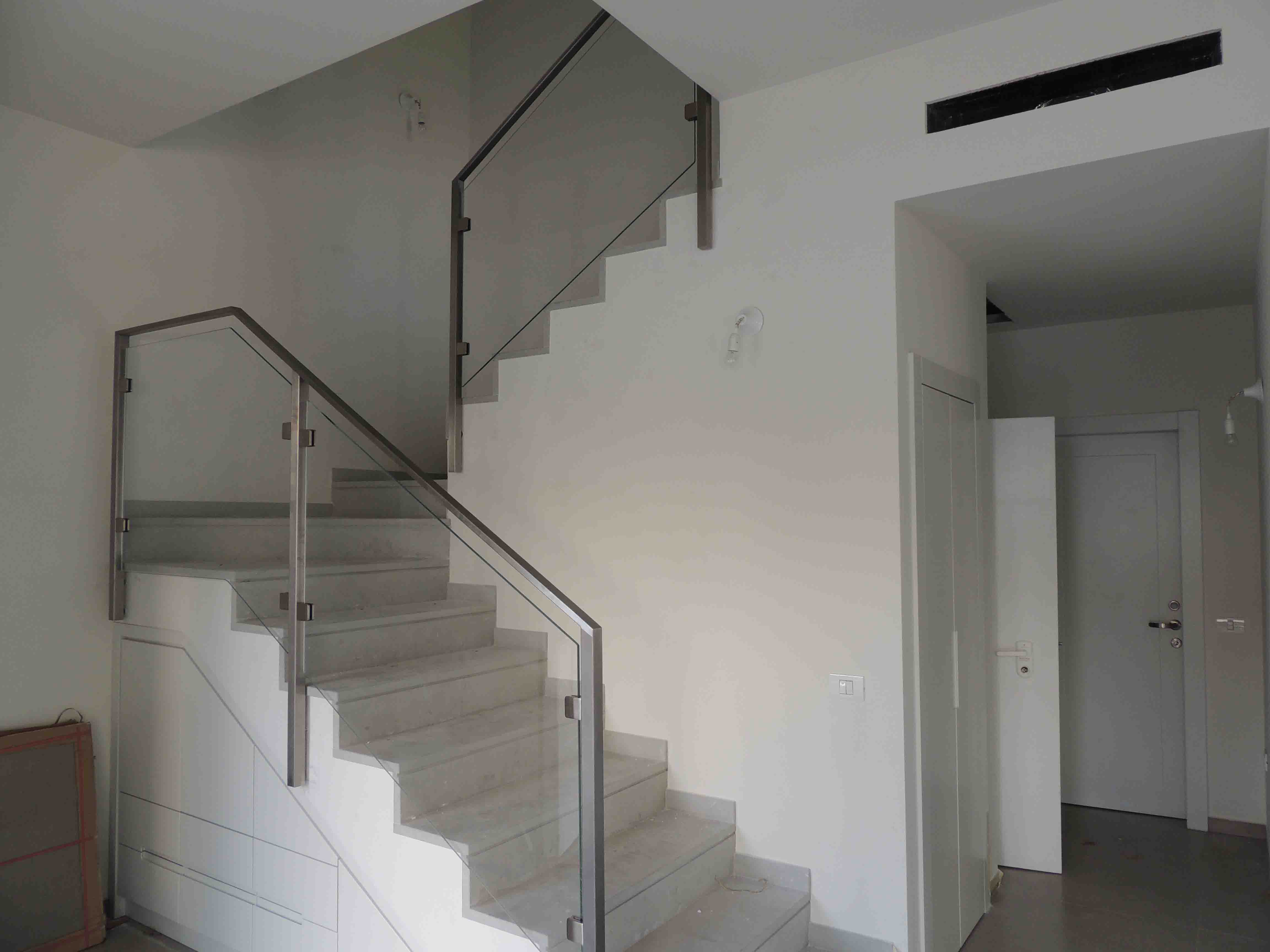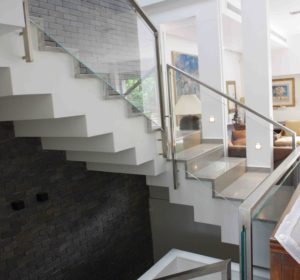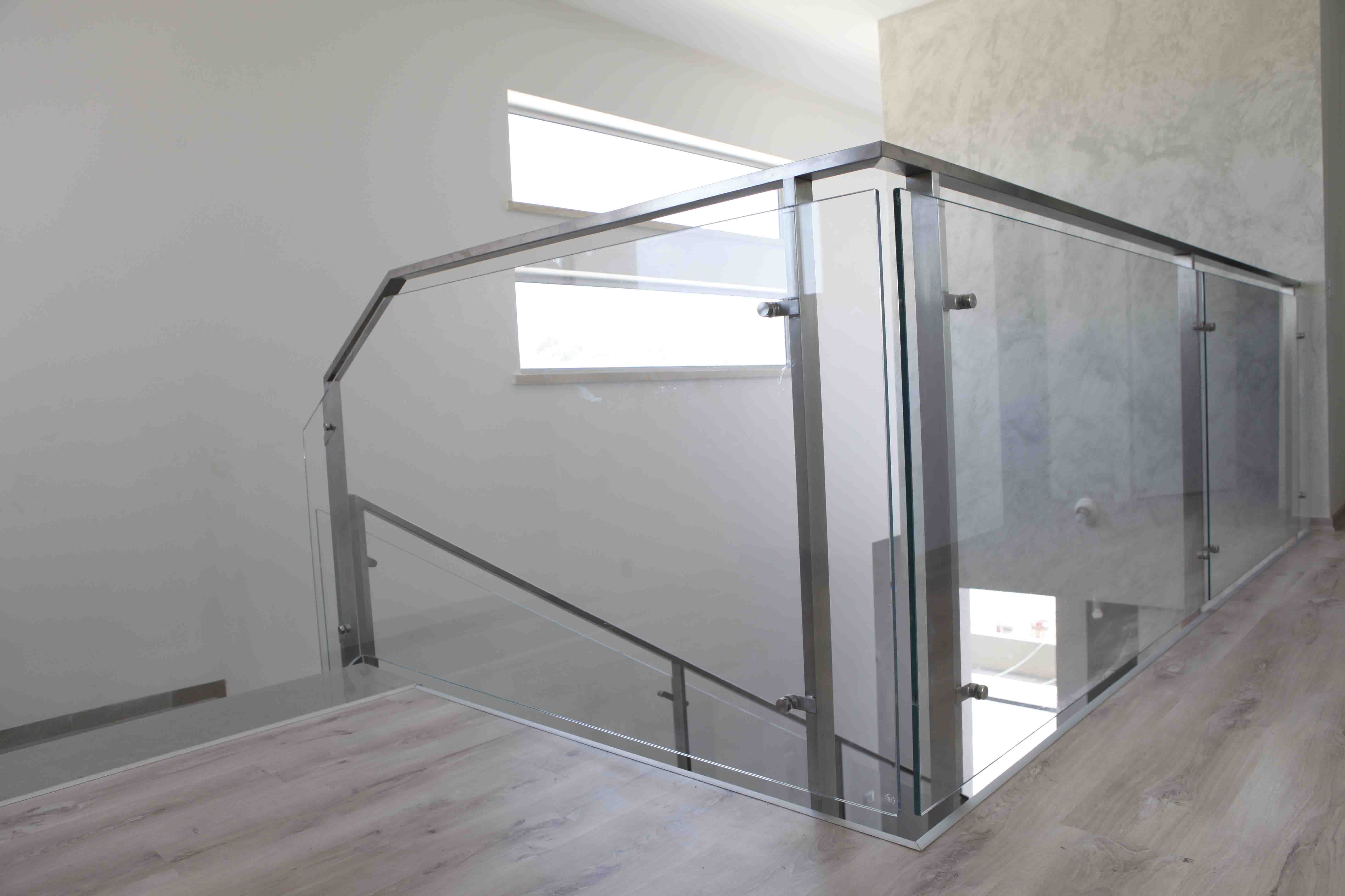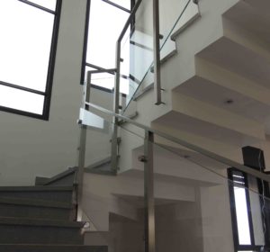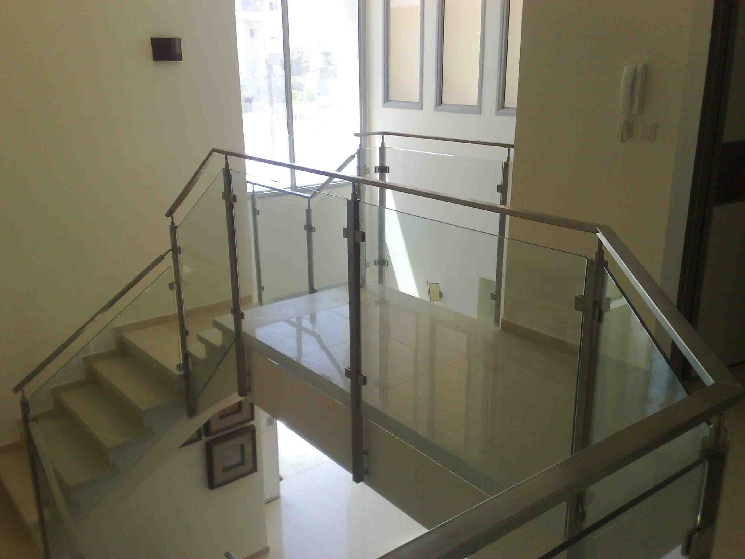+ וילה באר שבע : מעקה נירוסטה משולב זכוכית ע"ג גרם מדרגות ברזל