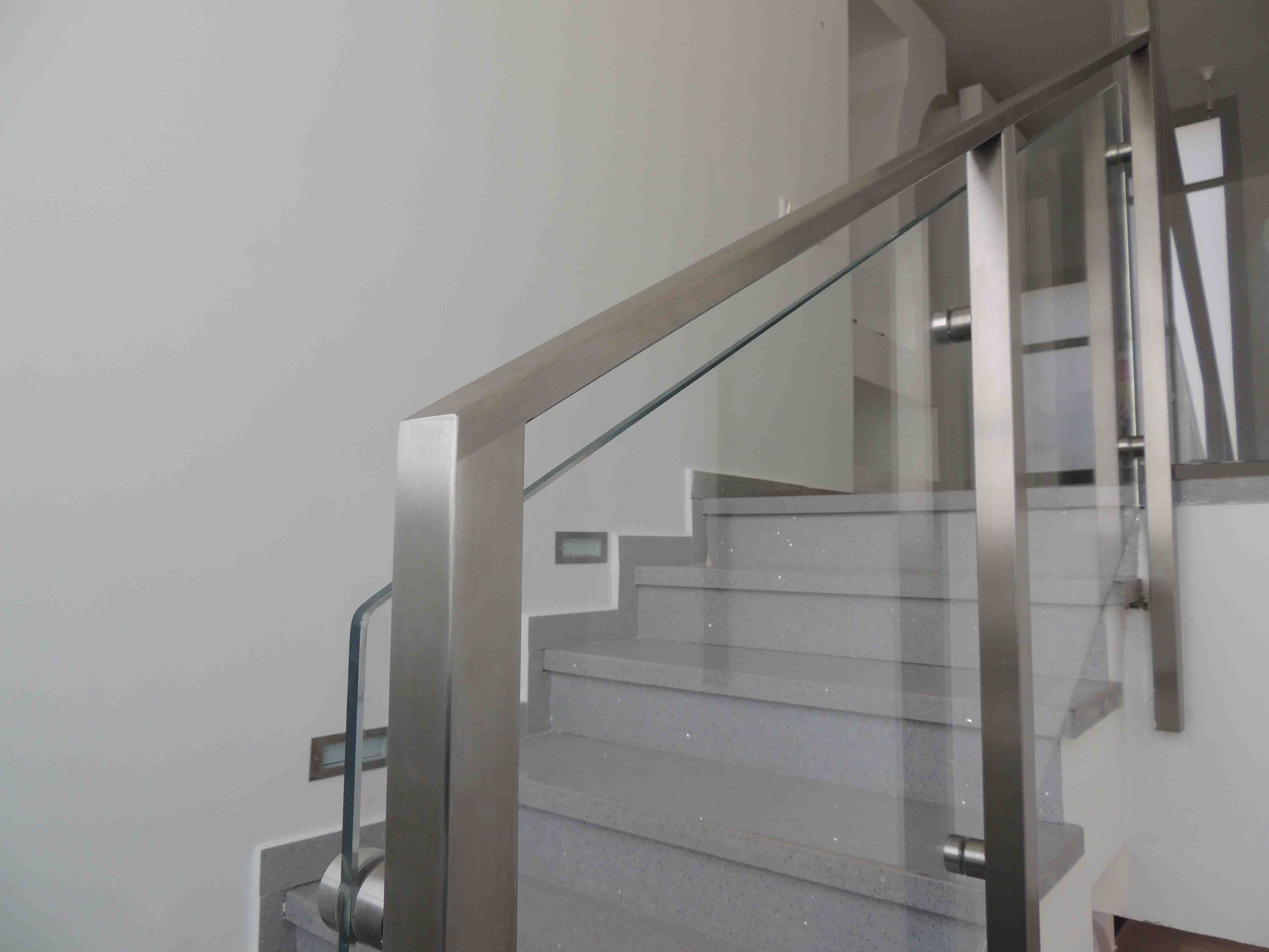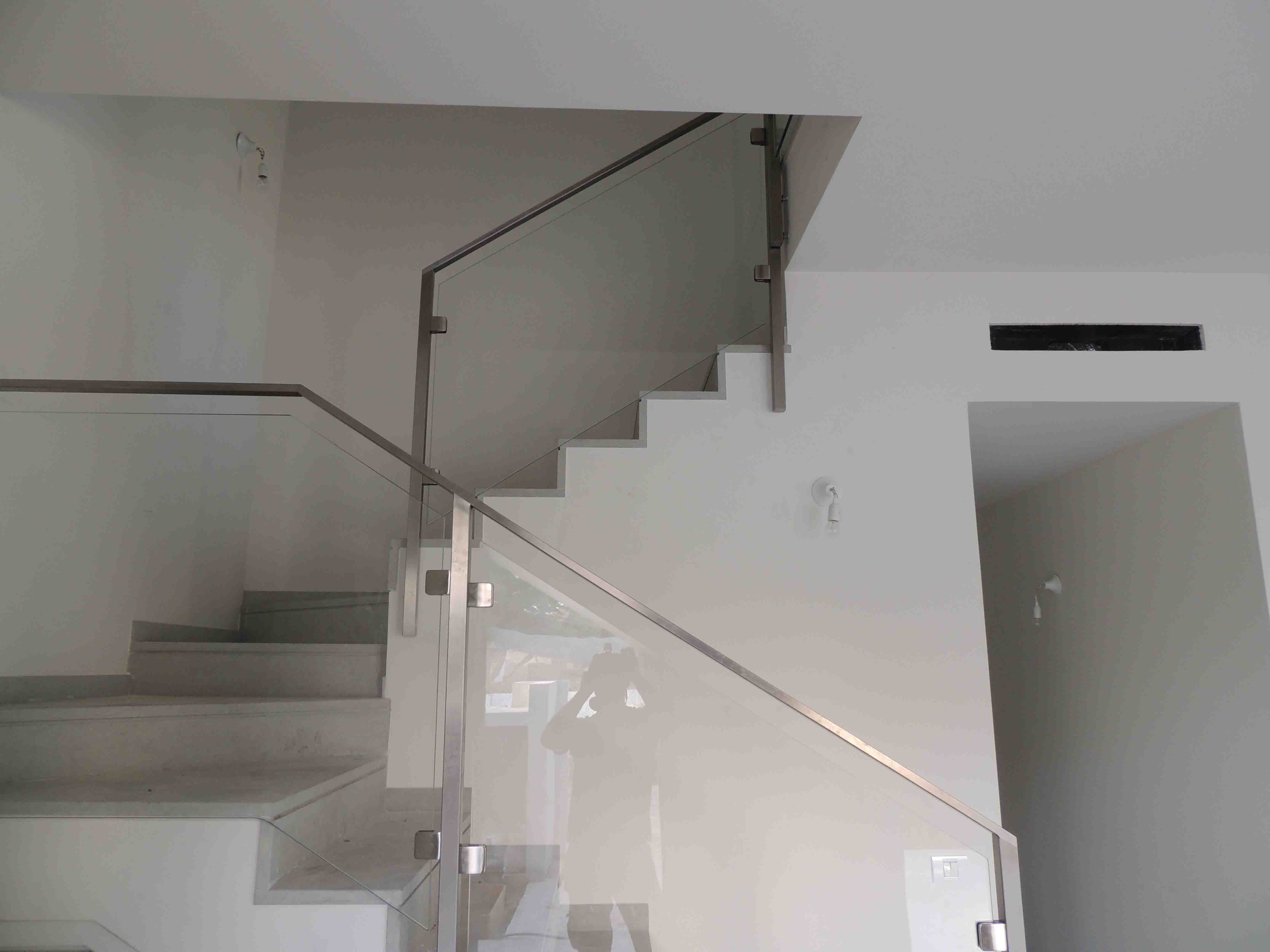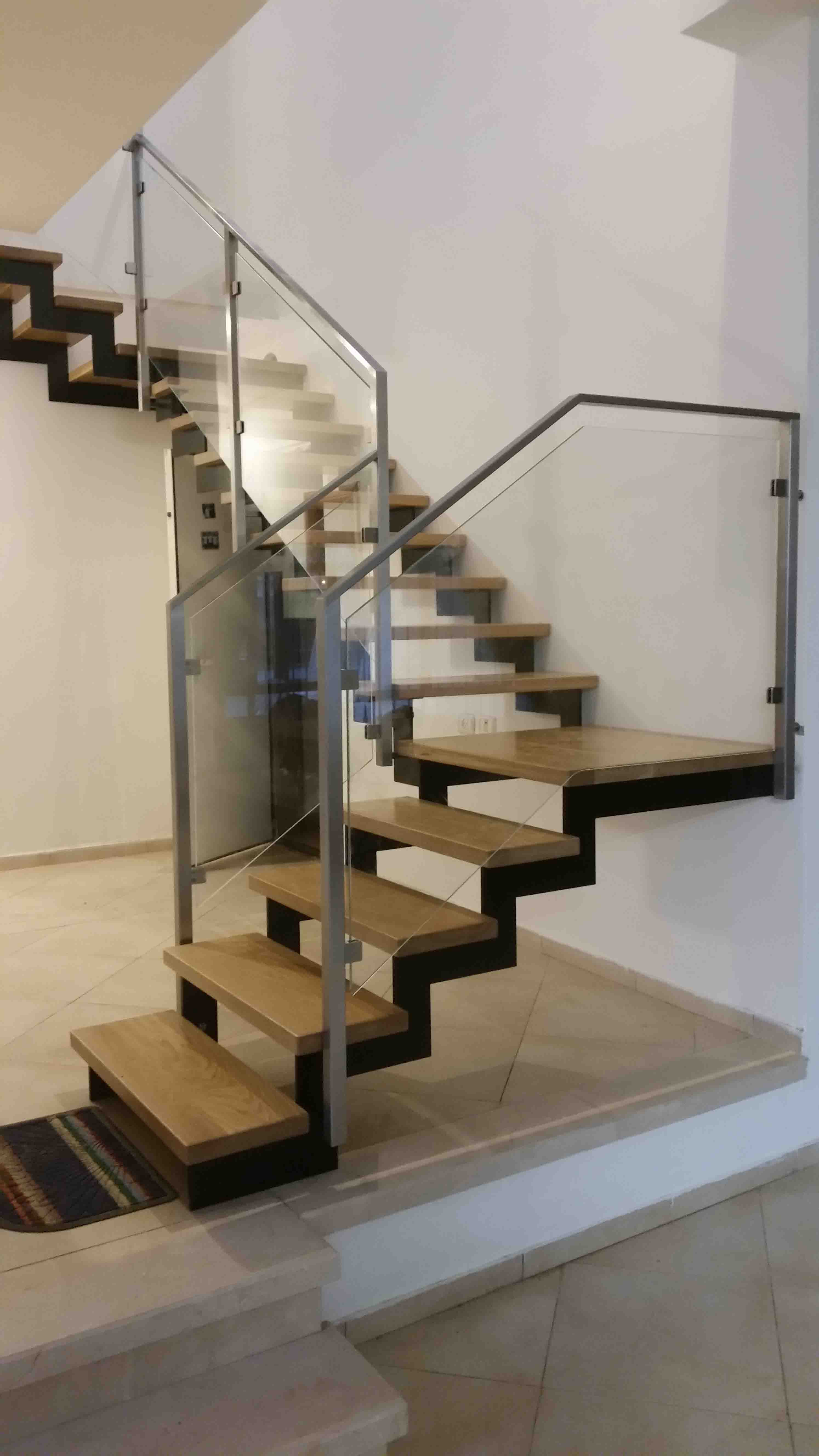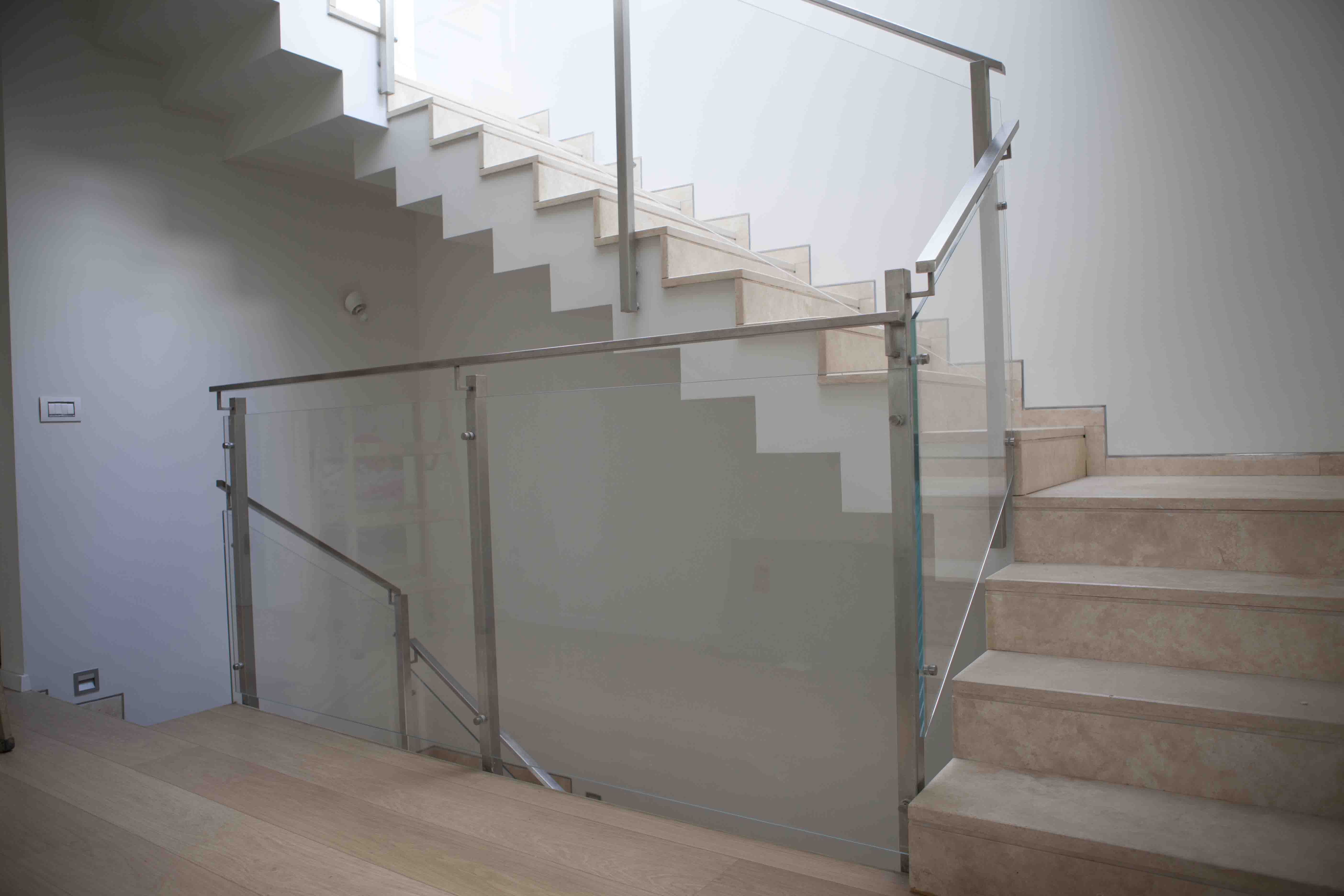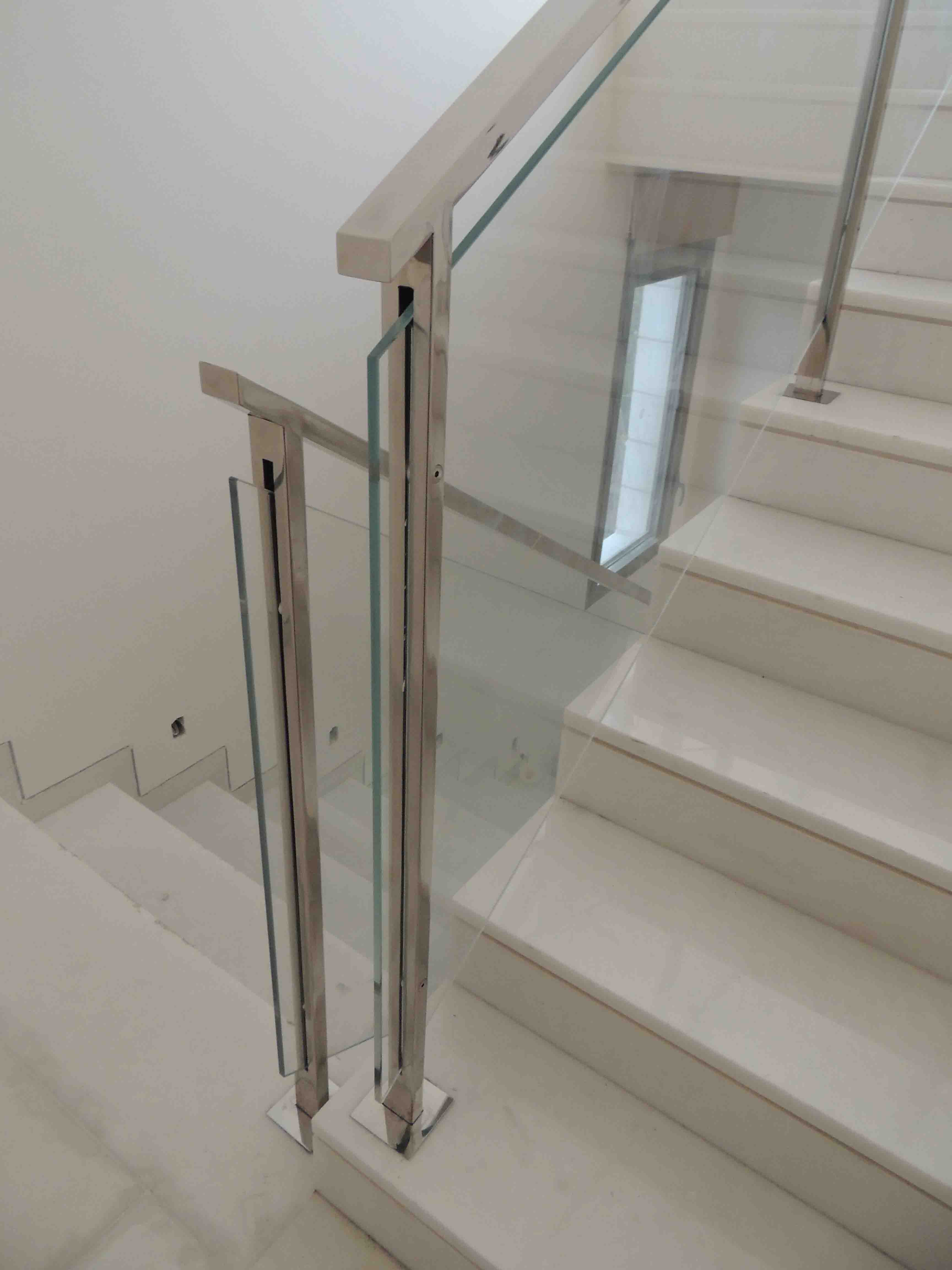+ וילה באר שבע : מעקה נירוסטה משולב זכוכית ע"ג גרם מדרגות ברזל
