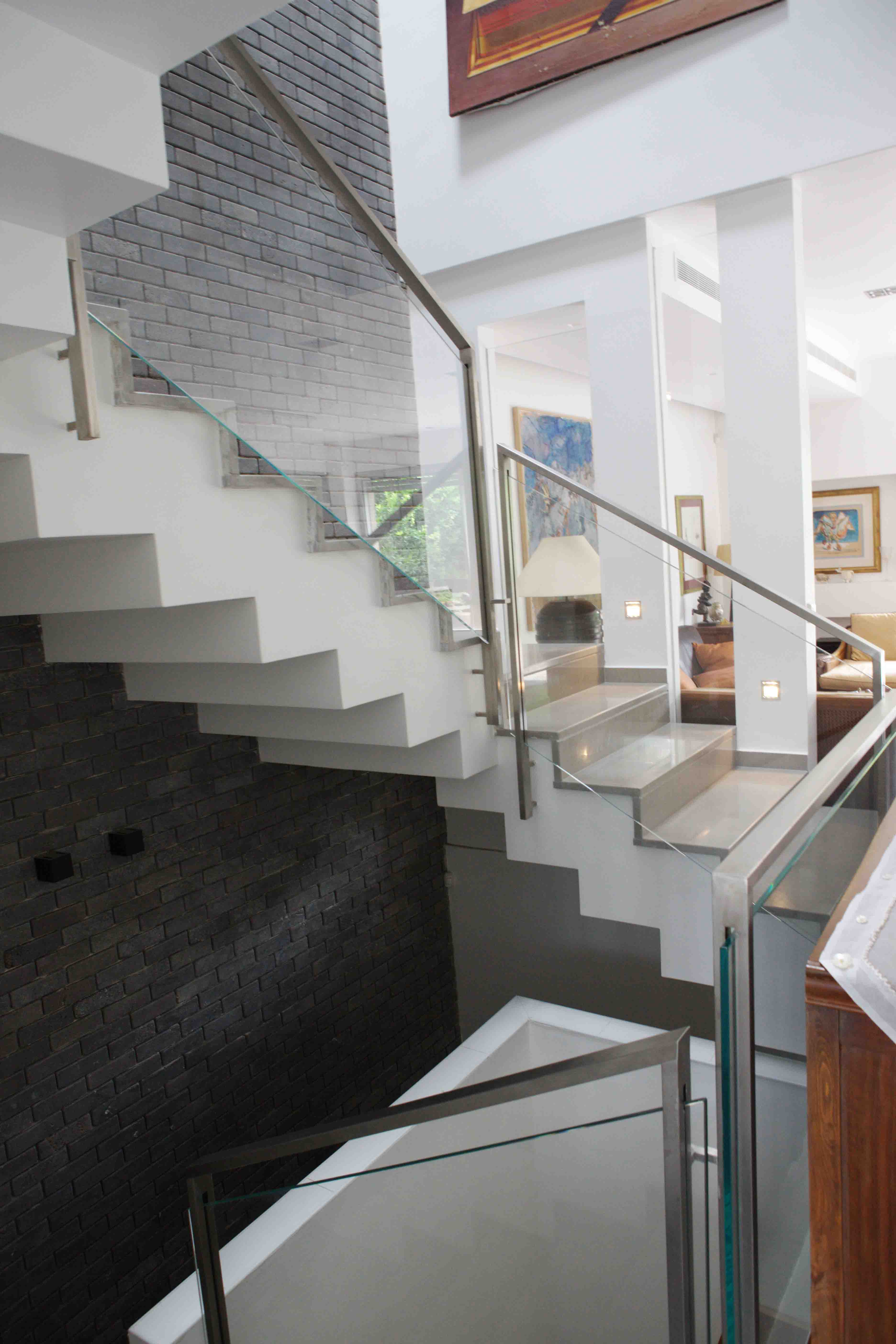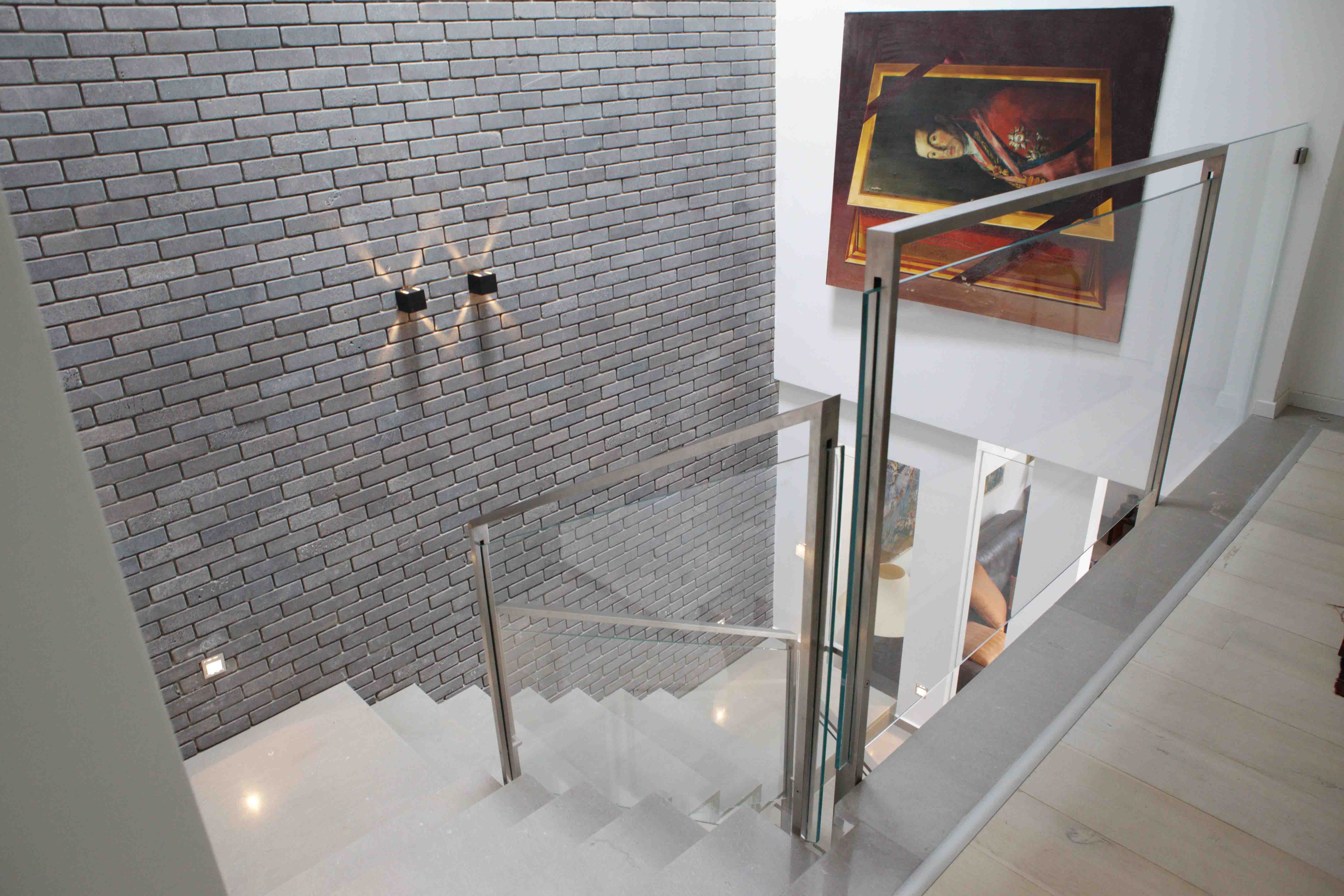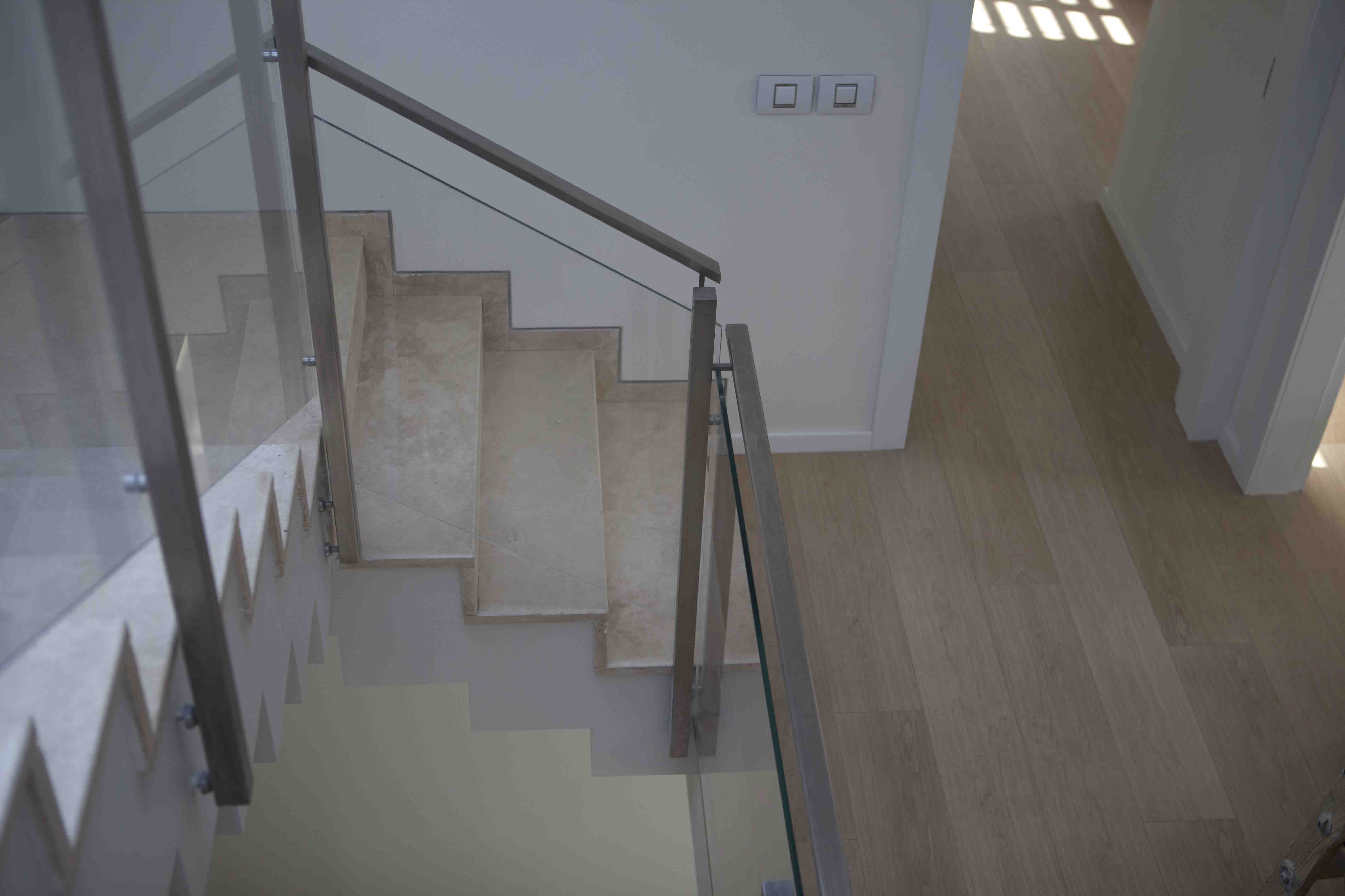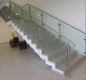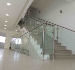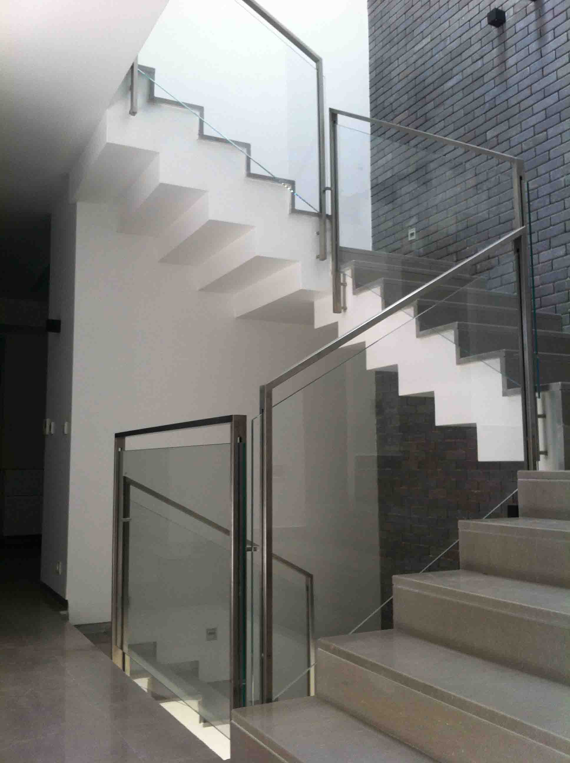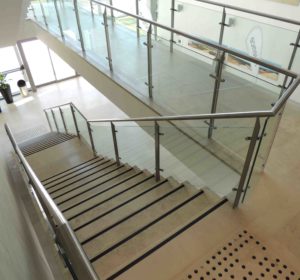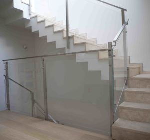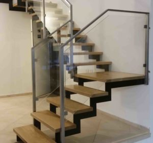 + וילה באר שבע : מעקה נירוסטה משולב זכוכית ע"ג גרם מדרגות ברזל