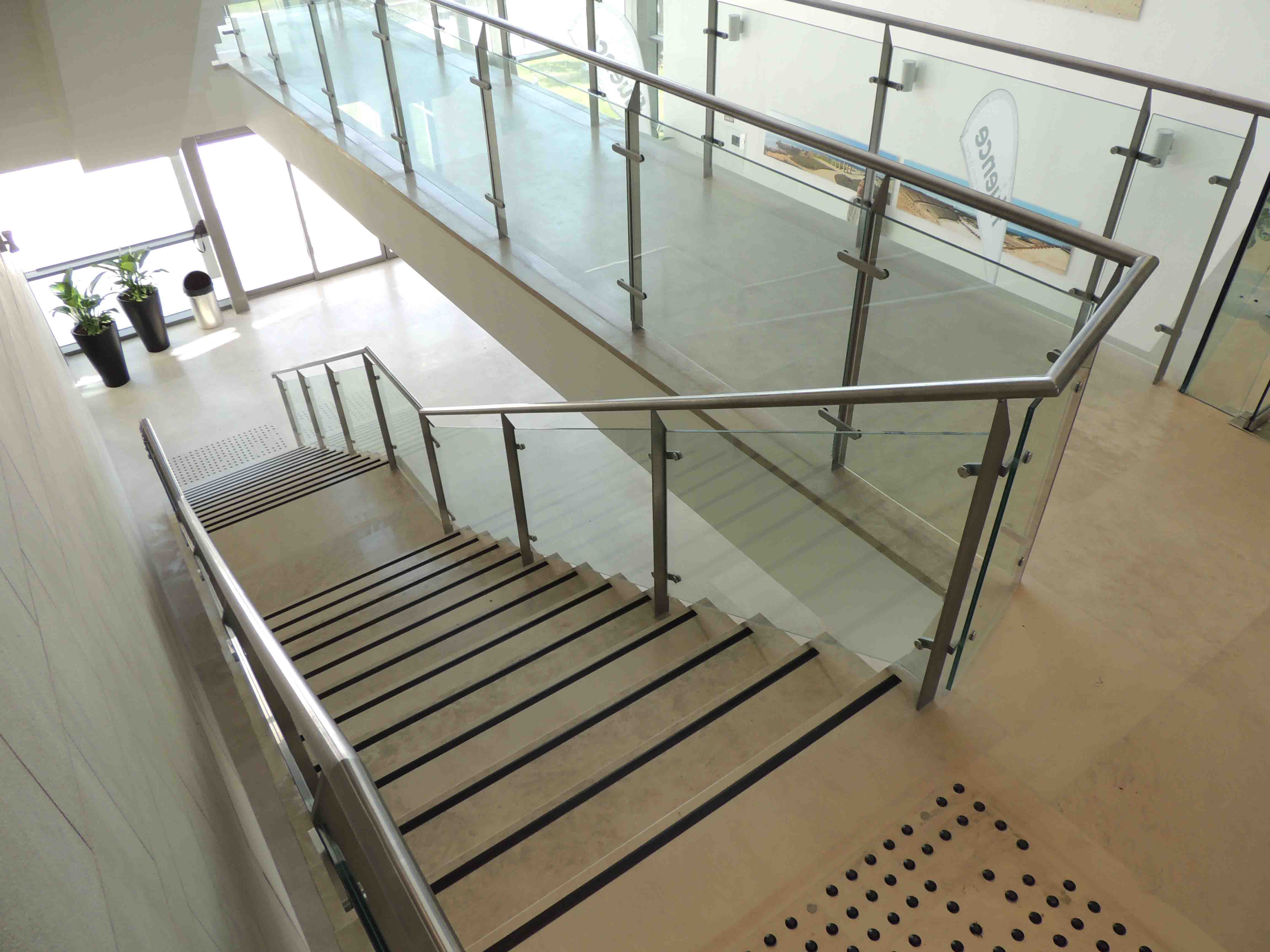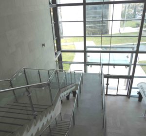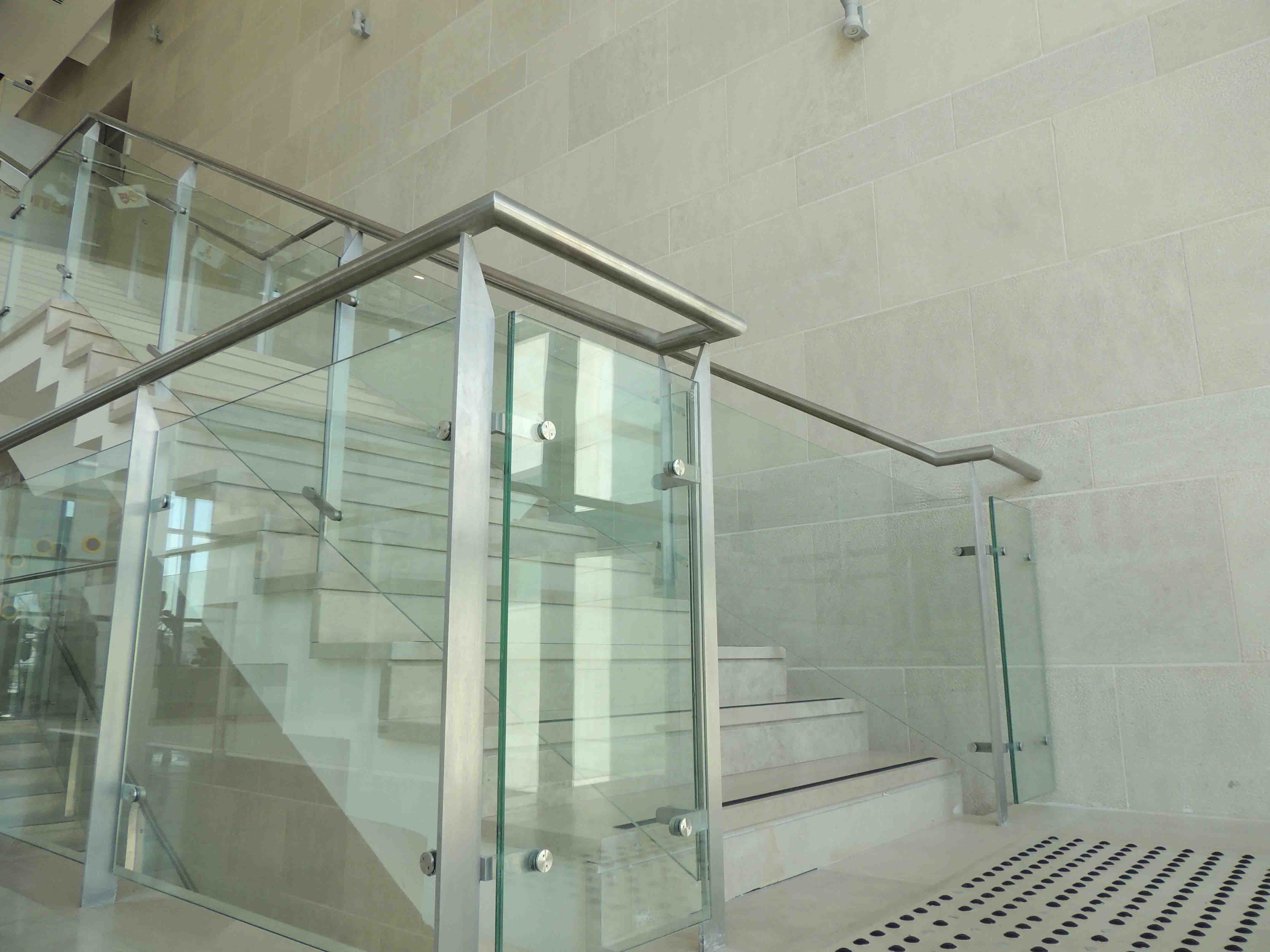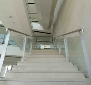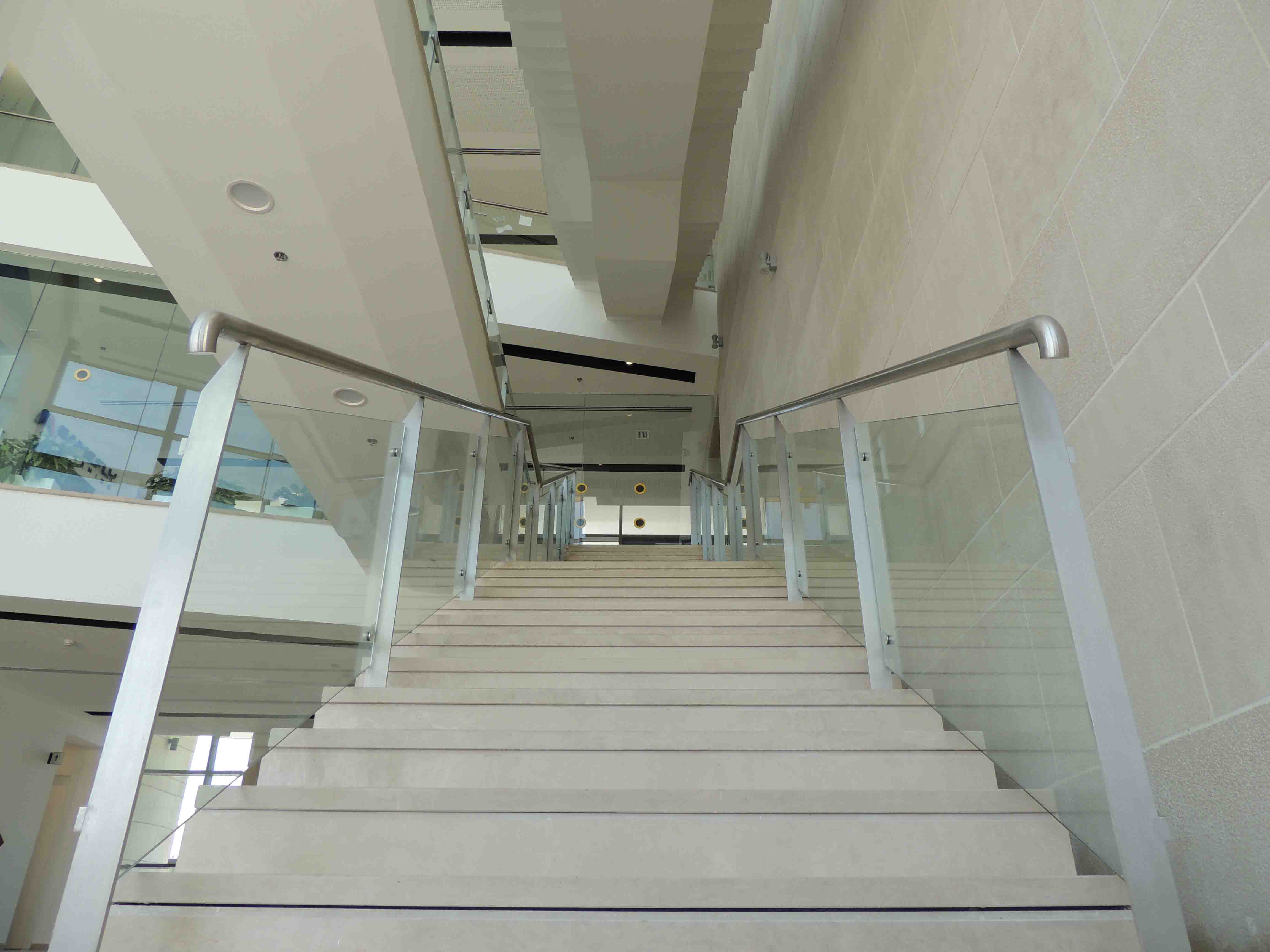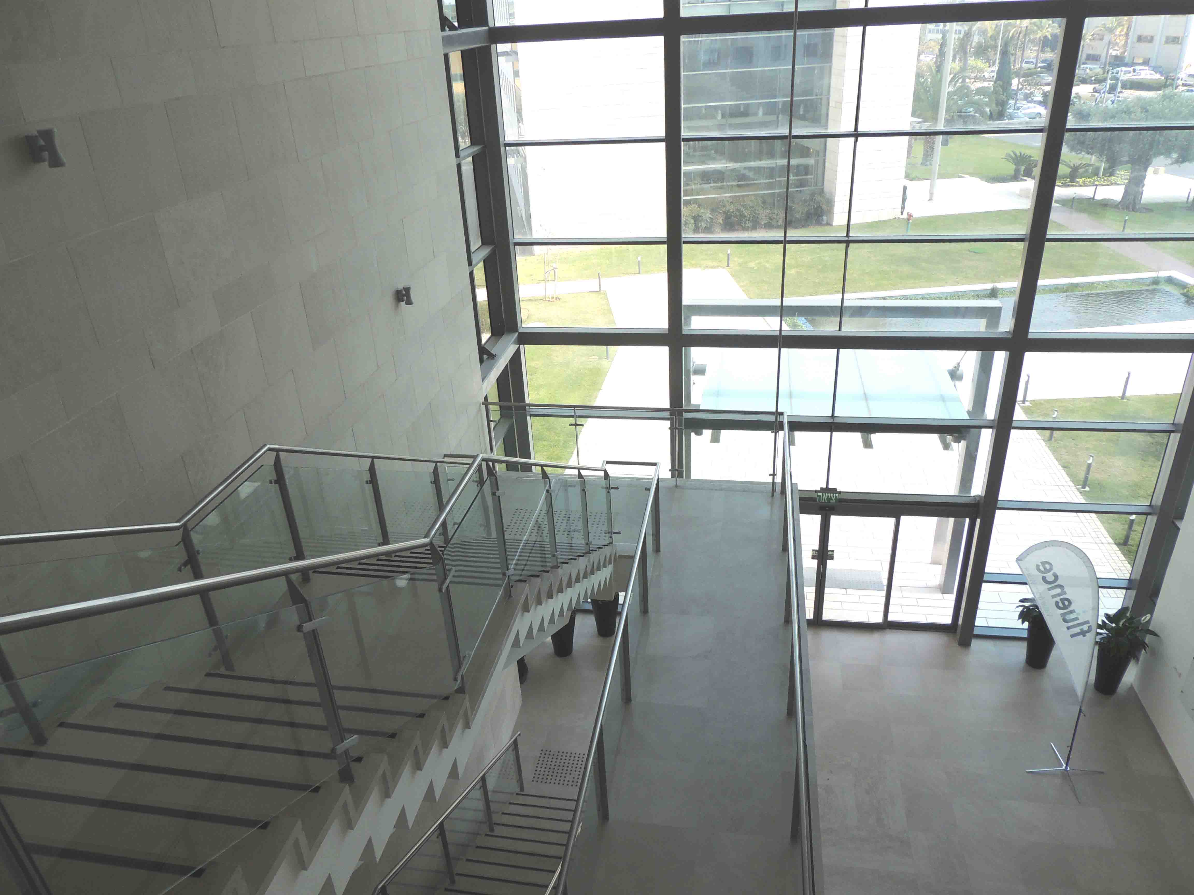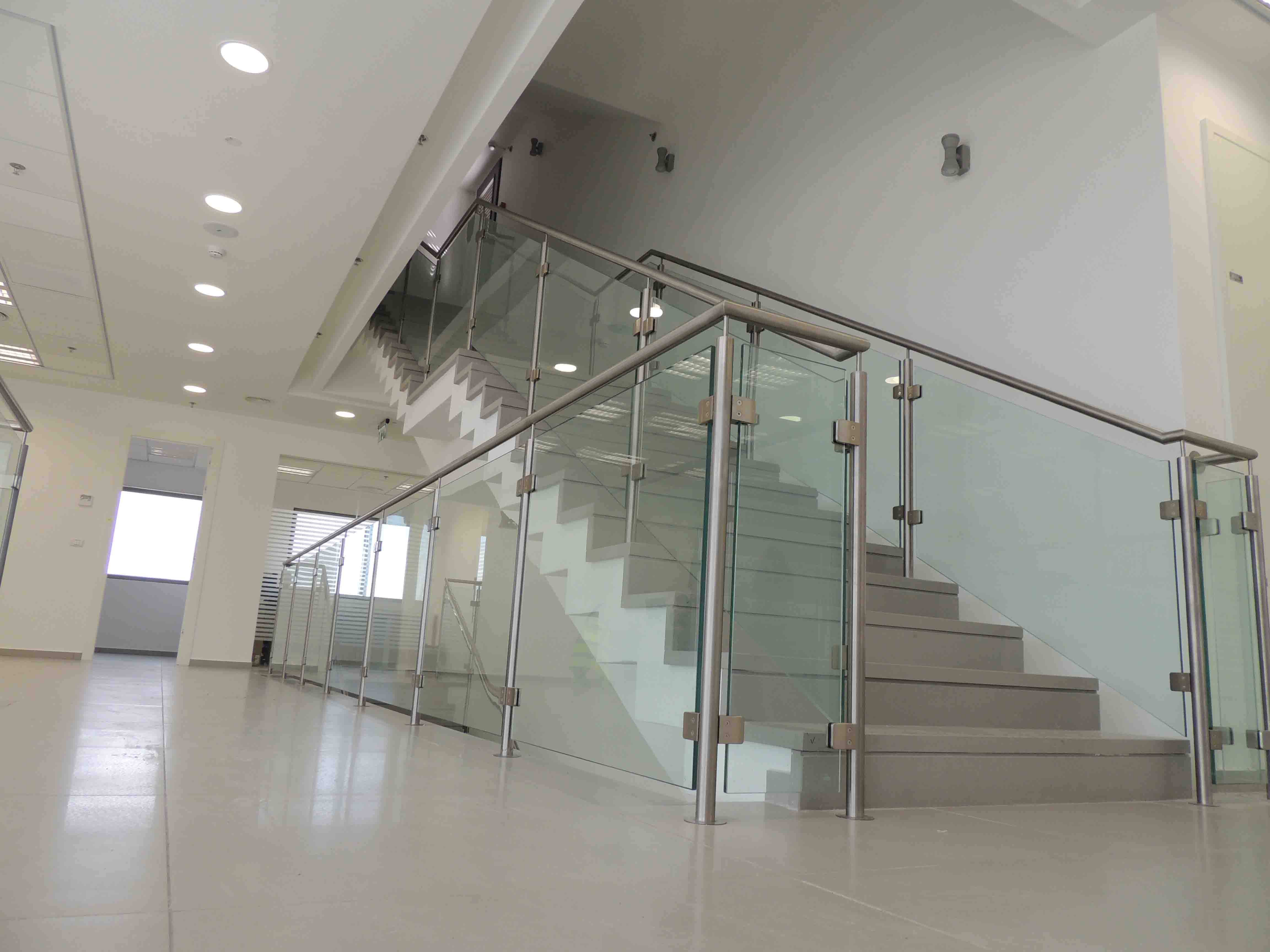 + בניין משרדים קיסריה : מעקה נירוסטה חומר מלא משולב זכוכית