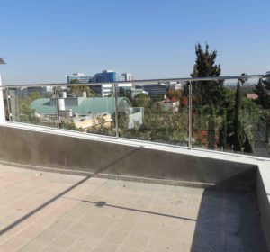 + וילה רחביה ירושלים : מעקה זכוכית מושחל דרך פרופיל נירוסטה בCNC מלוטש מבריק