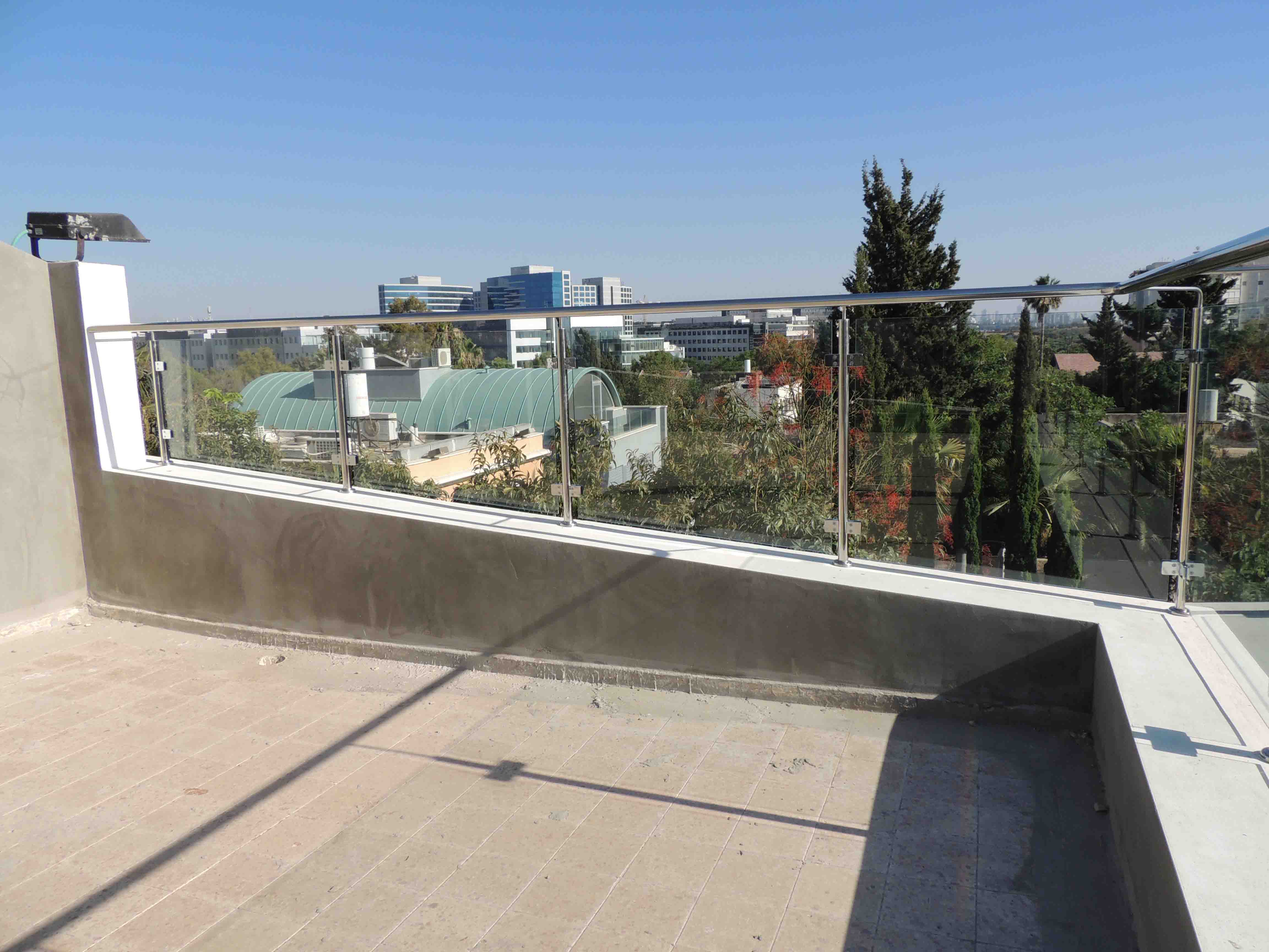 + וילה אשדוד : מעקה זכוכית ע"ג עמודונים