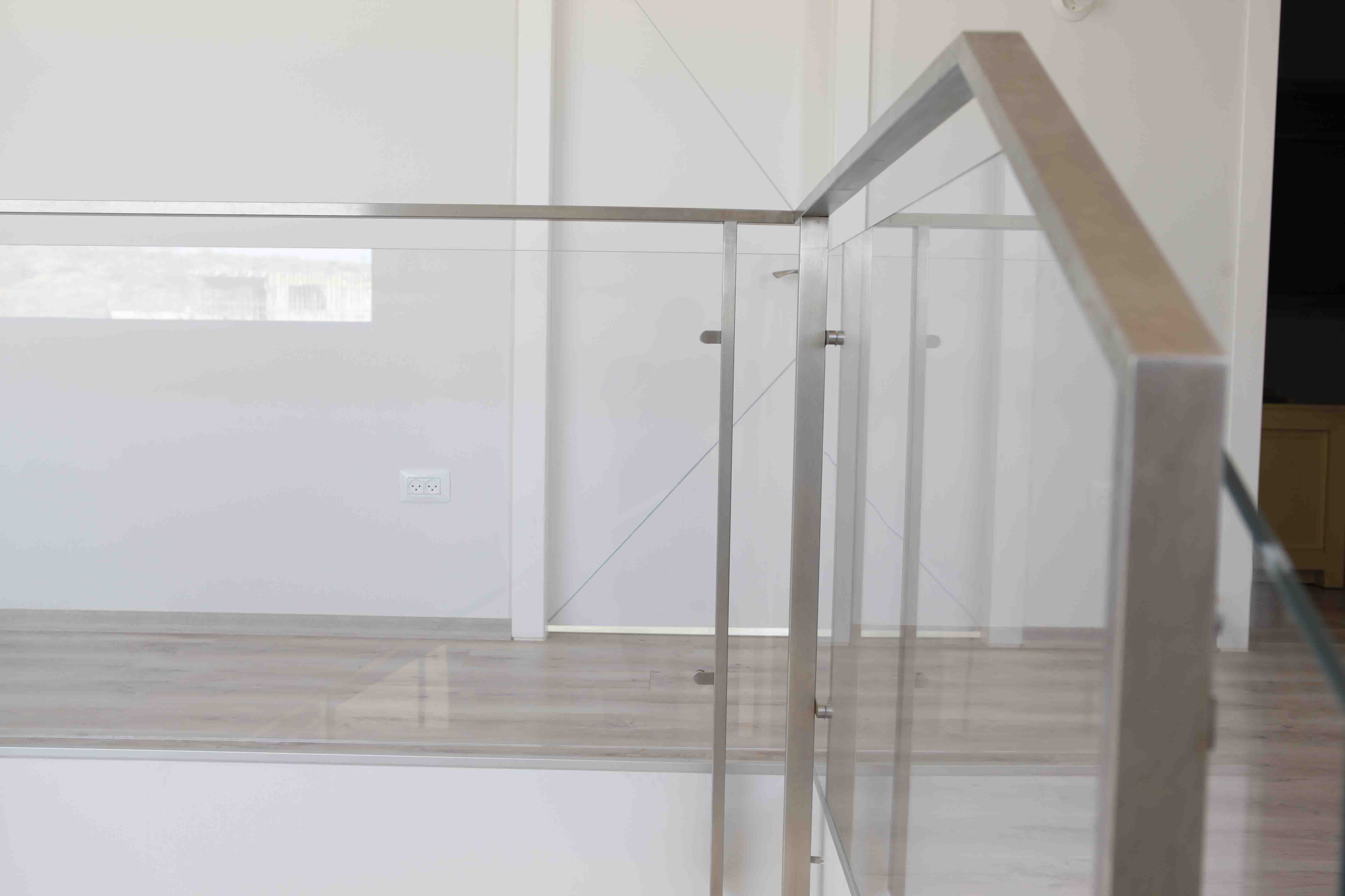 + וילה ראש העין : מעקה נירוסטה מרובע משולב זכוכית