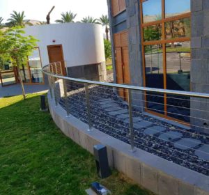 + בית בכפר כפר סבא : מעקה זכוכית שתול עם מאחז יד נירוסטה