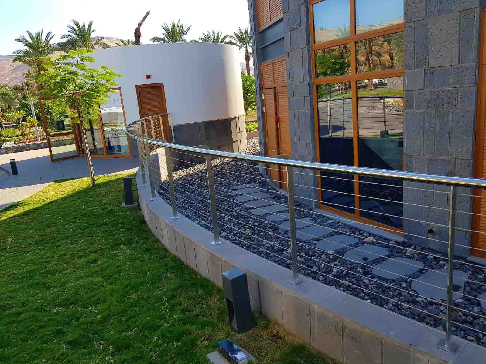 + מדרשת גולן בחספין : מעקה נירוסטה משולב זכוכית