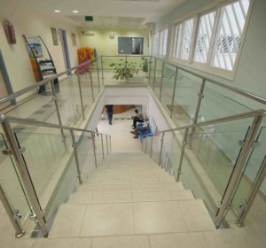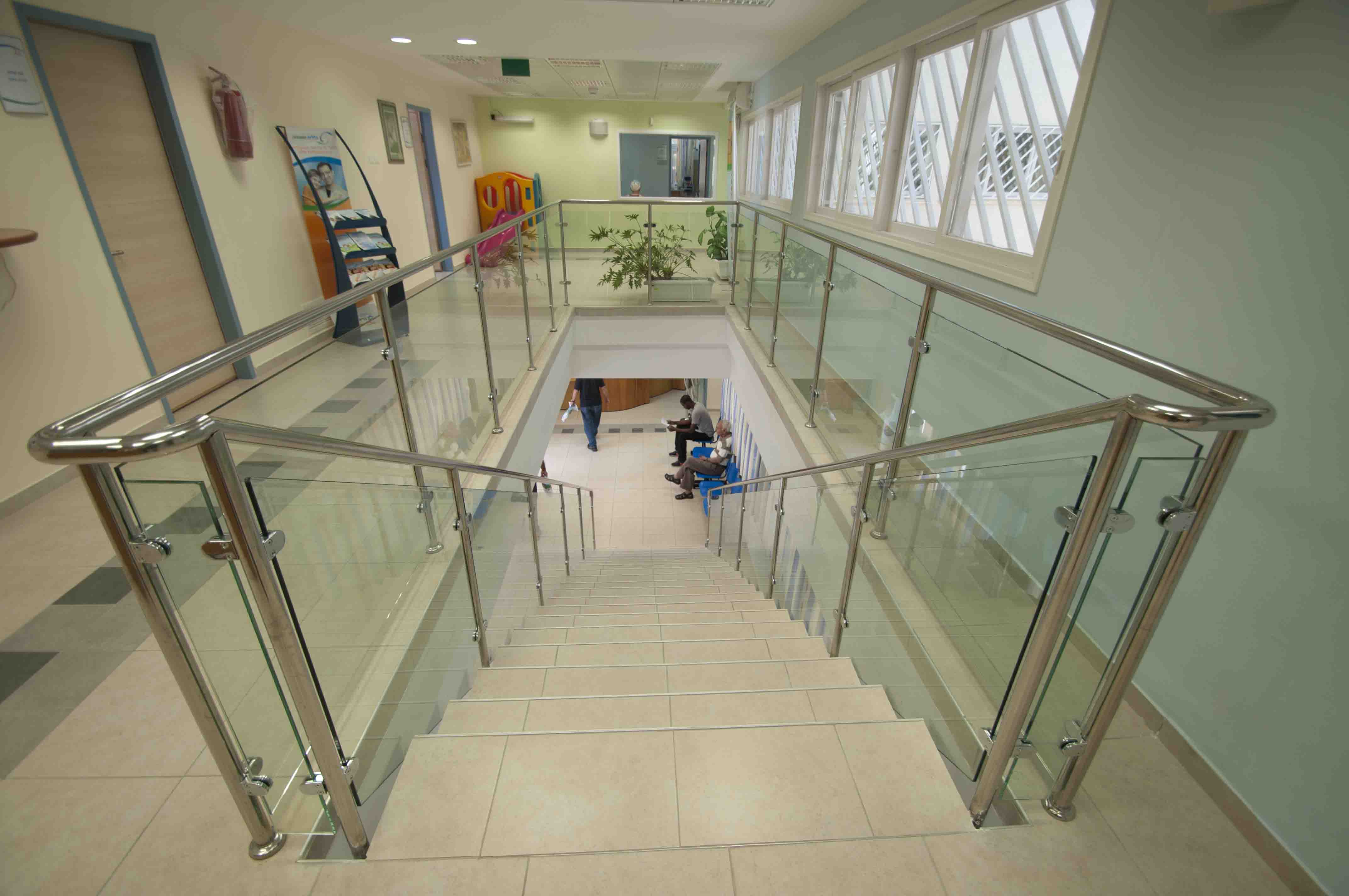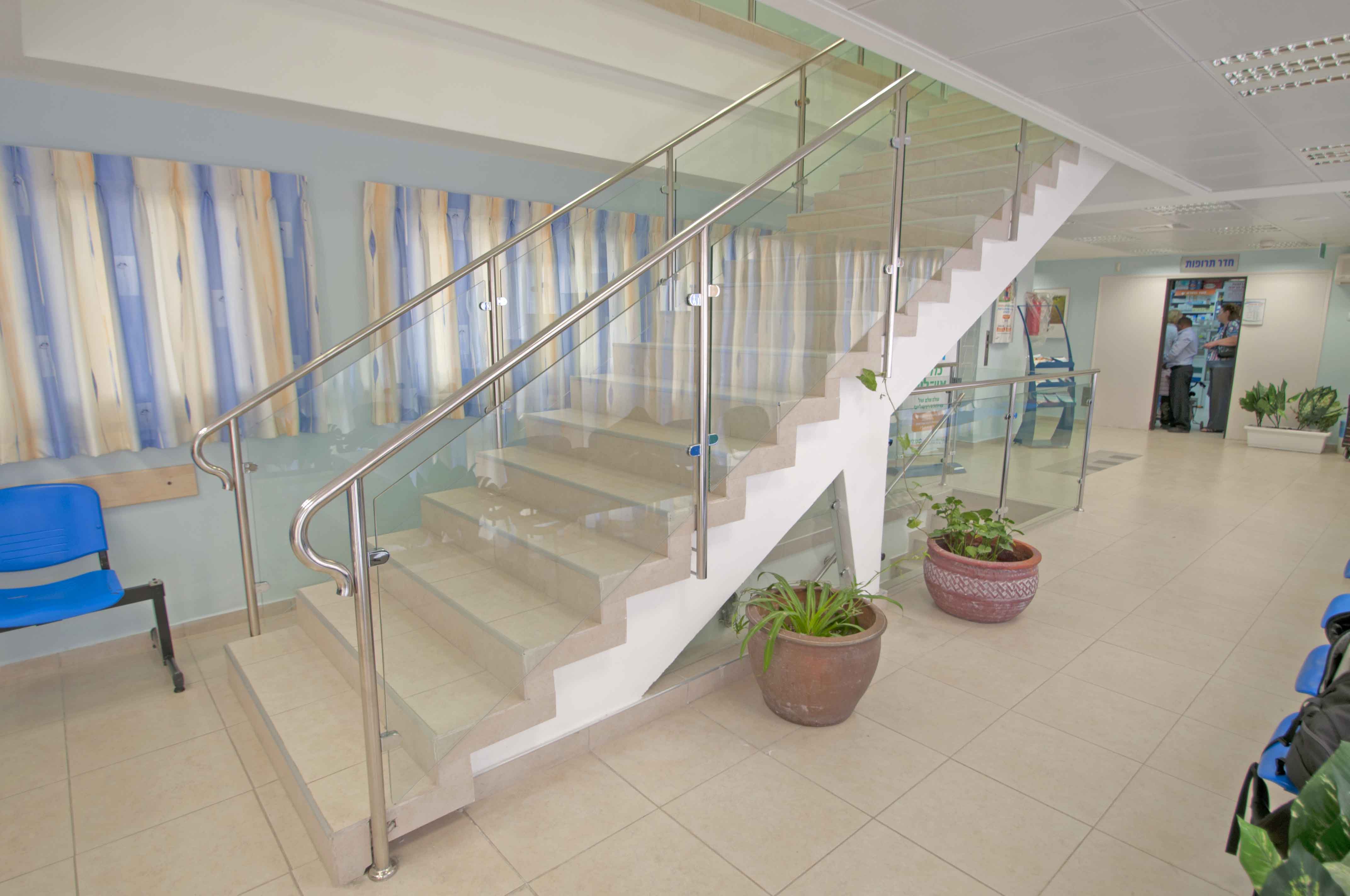+ קופ"ח כללית : מעקה נירוסטה משולב זכוכית