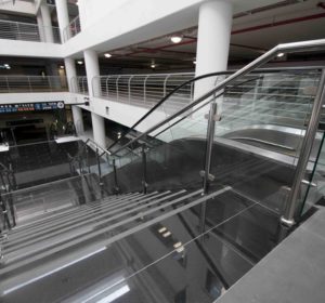 + חניון היכל התרבות / הבימה : מעקה נירוסטה משולב זכוכית
