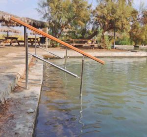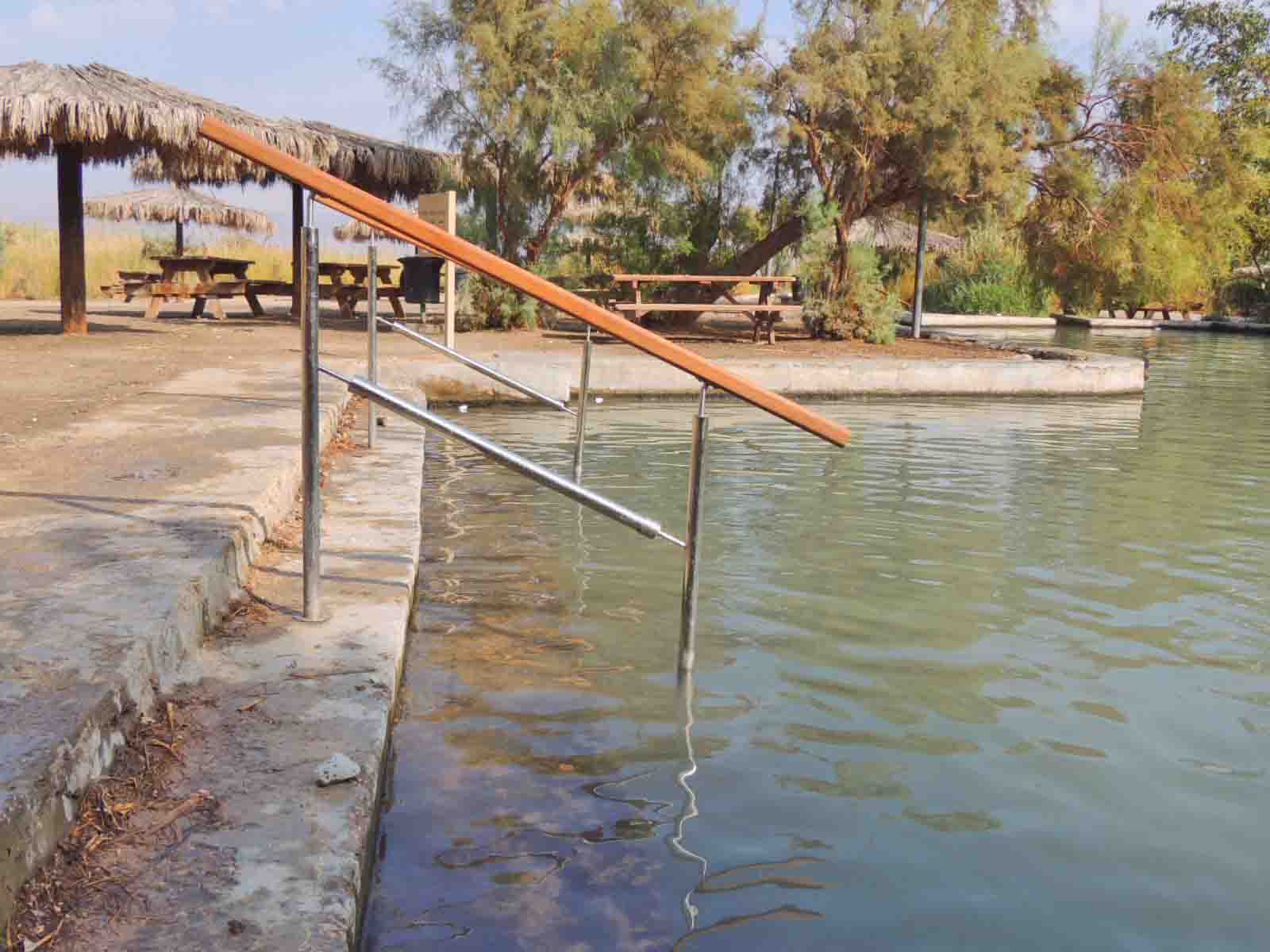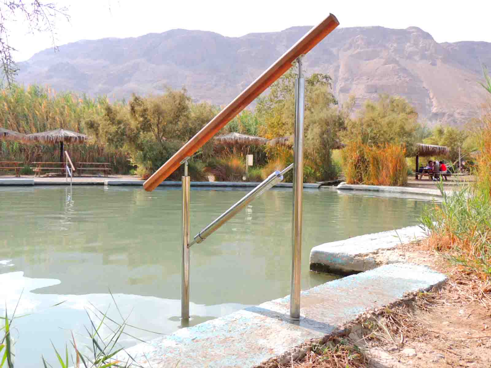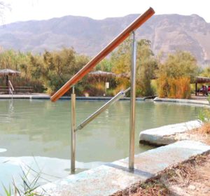 + מתחם עיינות צוקים : מאחזי יד עץ ע"ג עמודי נירוסטה