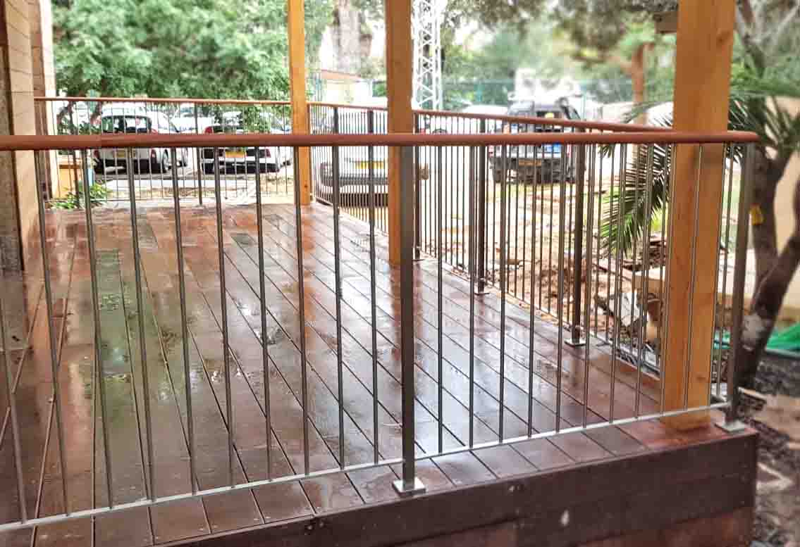 + בסיס צה"ל : מעקה מוטות עם מאחז יד עץ