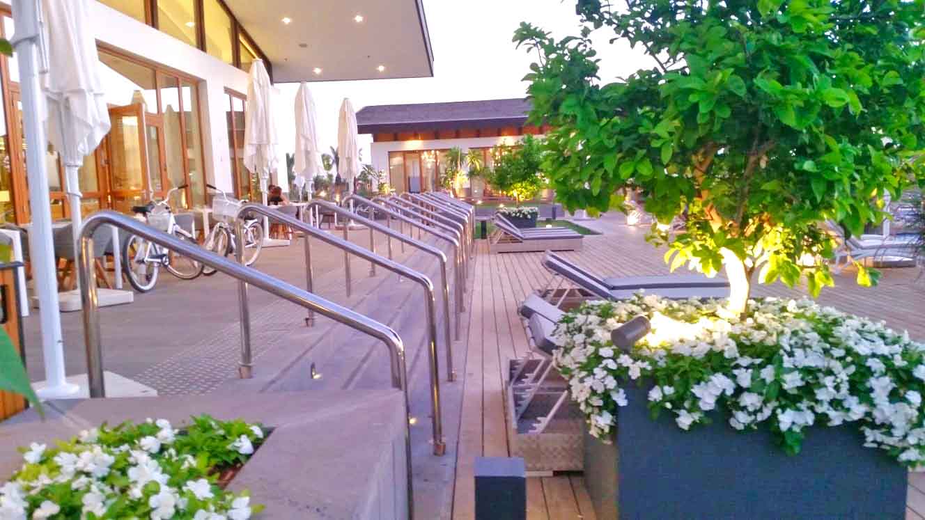 + מלון סטאי רחבת הבריכה : עמודים מחומר מלא עם מאחזי יד עץ